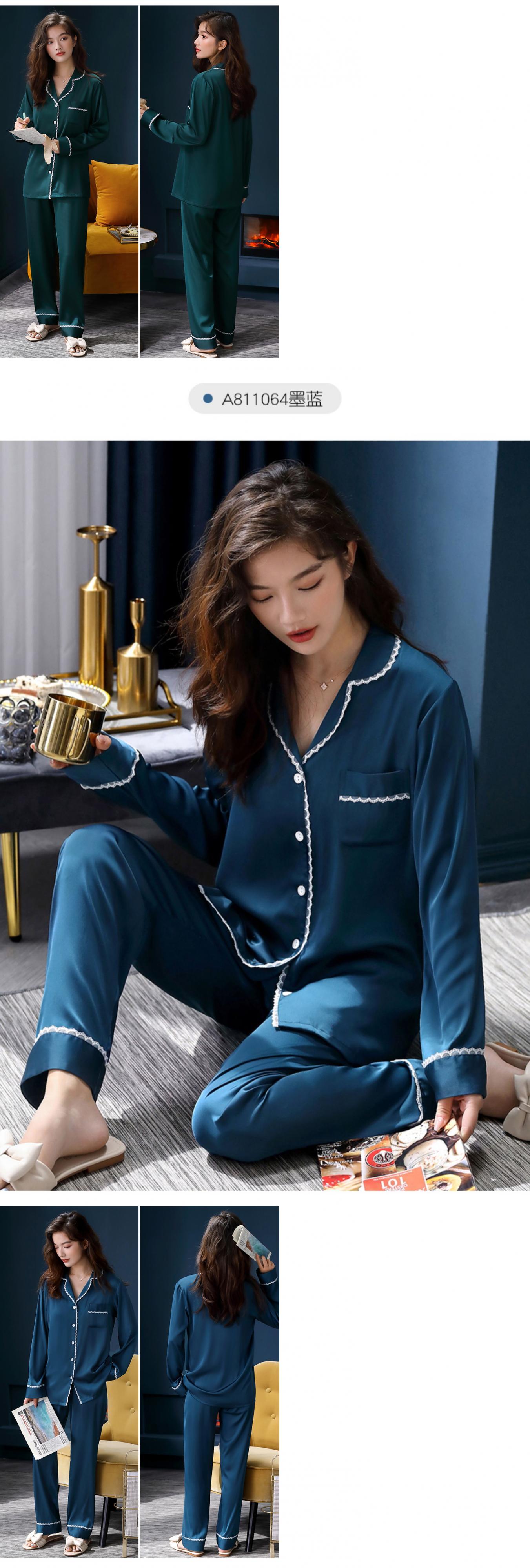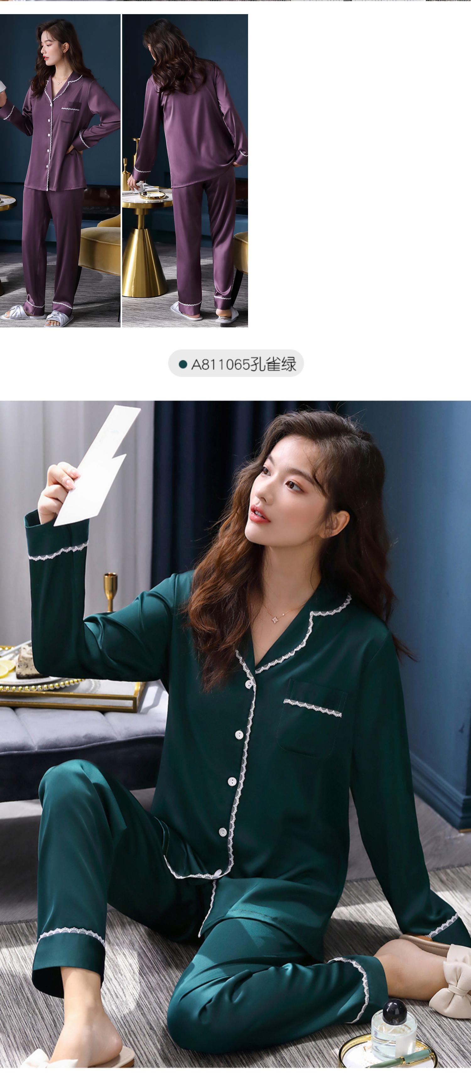 パジャマレディース春夏シルクアイスシルク長袖春秋秋薄切片模造シルクホームサービスレディーススーツ jial26743982466