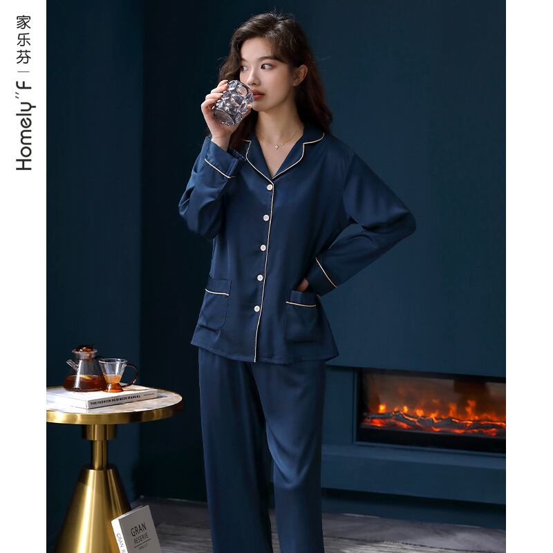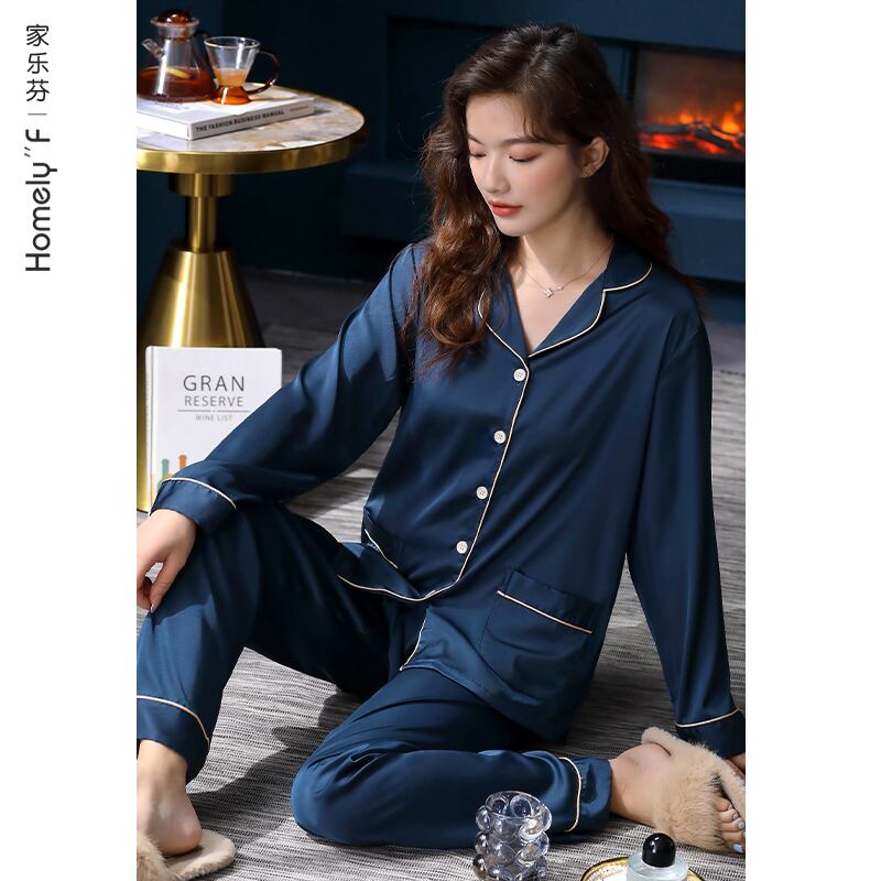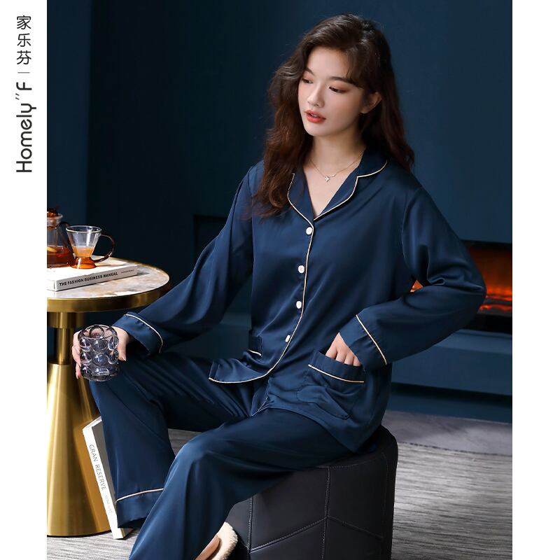 パジャマレディース春夏シルクアイスシルク長袖春秋秋薄切片人工シルクホームサービスレディーススーツ jial87657027892