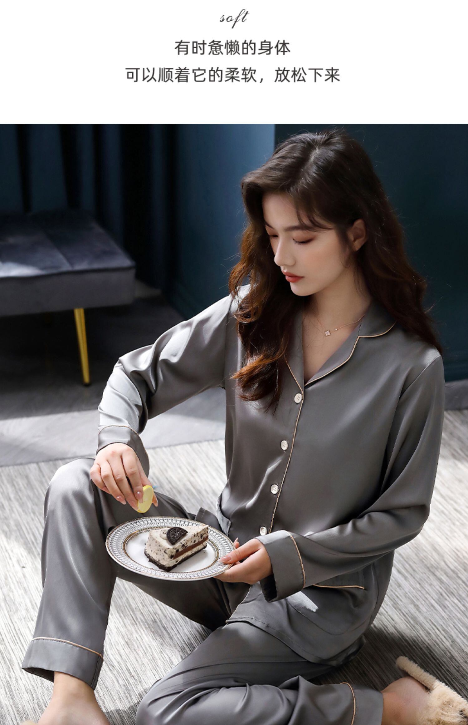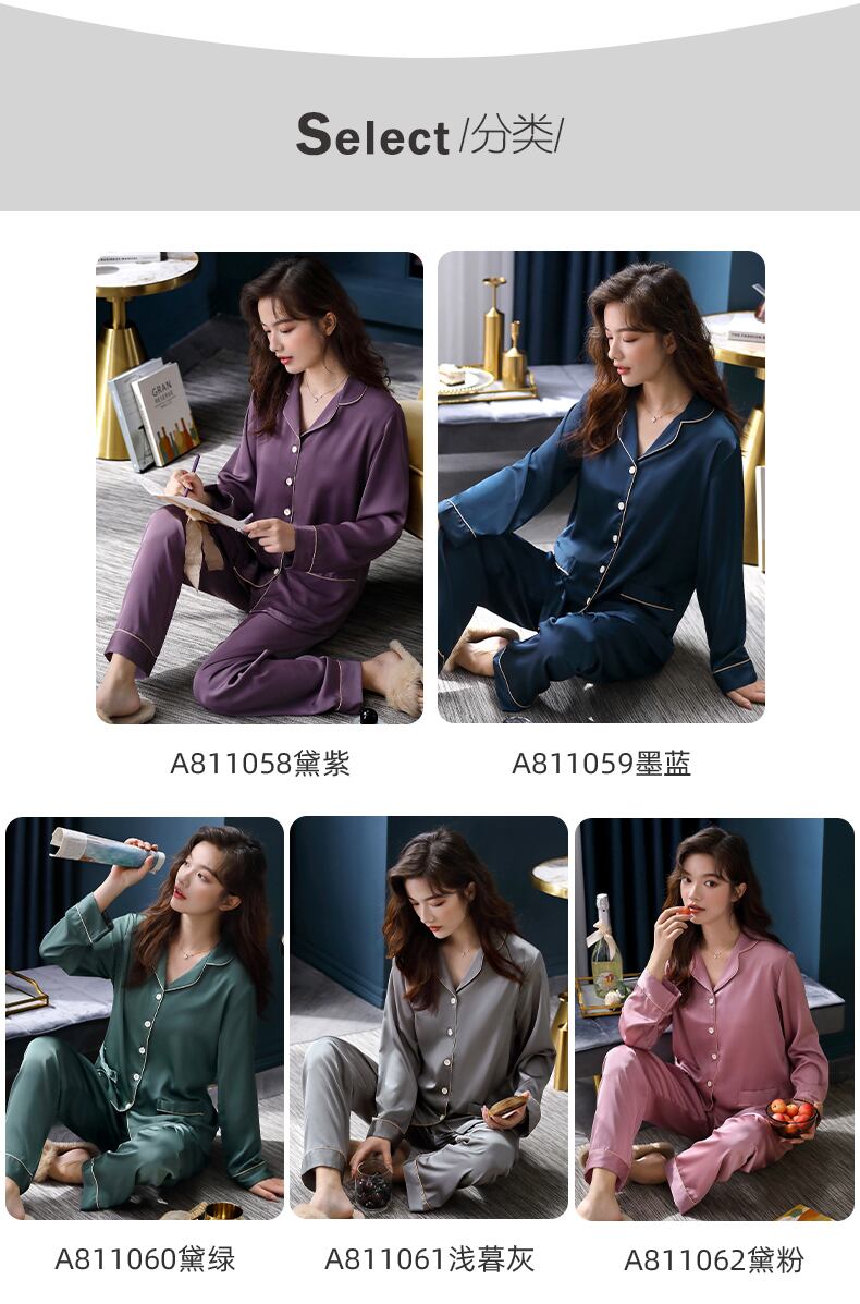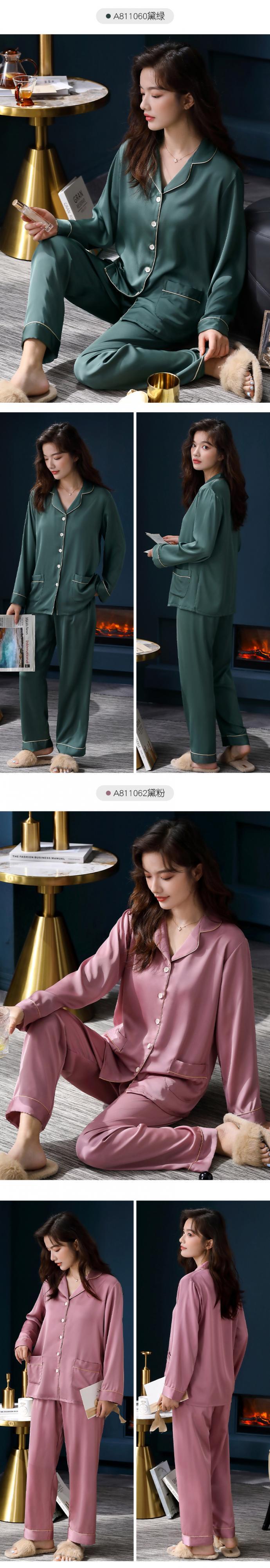 パジャマレディース春夏シルクアイスシルク長袖春秋秋薄切片人工シルクホームサービスレディーススーツ jial63243266223