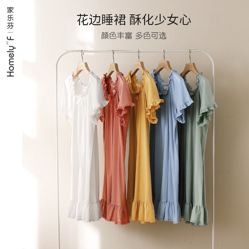 ナイトスカートレディースパジャマスカート夏夏薄手コットン半袖コットンスカートルーズラージサイズワンピース jial77241461190
