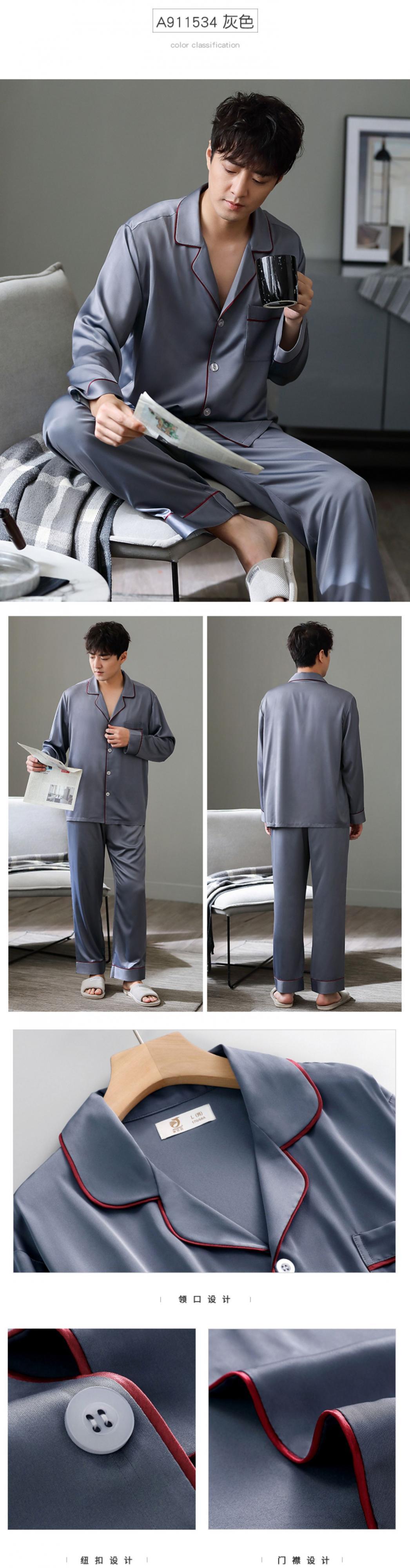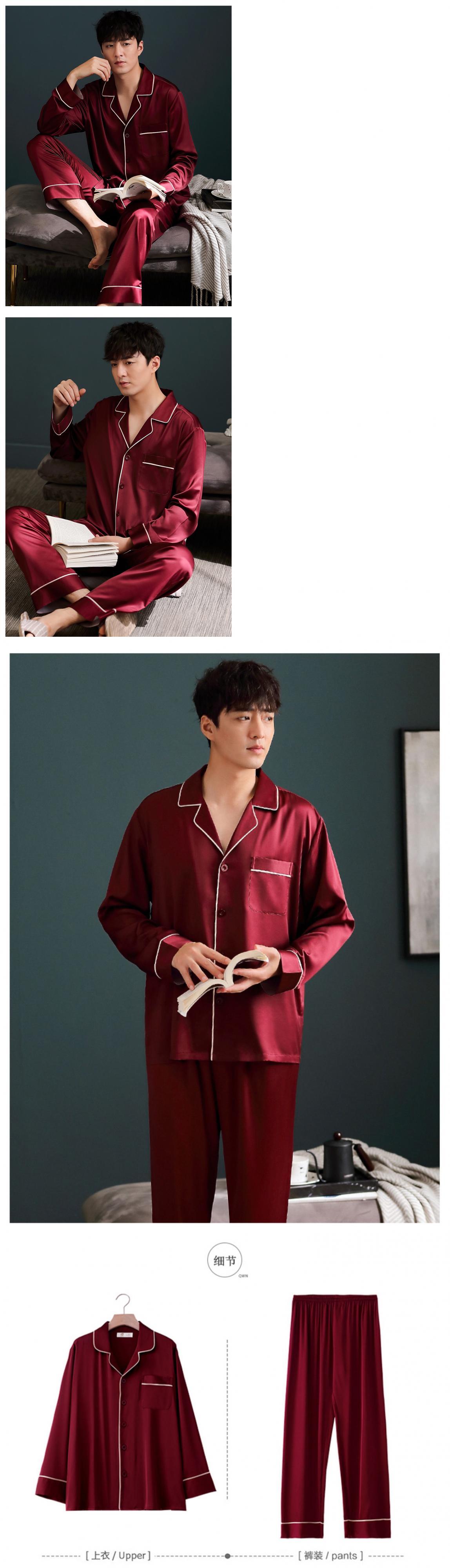 パジャマメンズ春夏夏シルクアイスシルク長袖春夏薄手シミュレーションシルクビッグレッド出生年スーツ jial77337703804