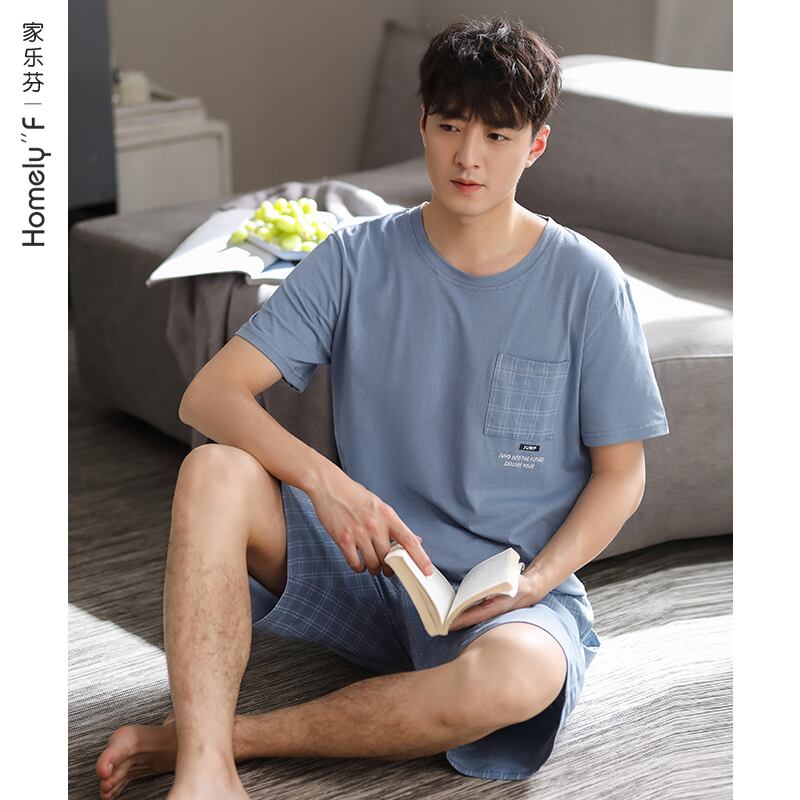 新しいパジャマメンズサマーコットン半袖ショーツホームサービスメンズサマーシンコットン jial59399427691