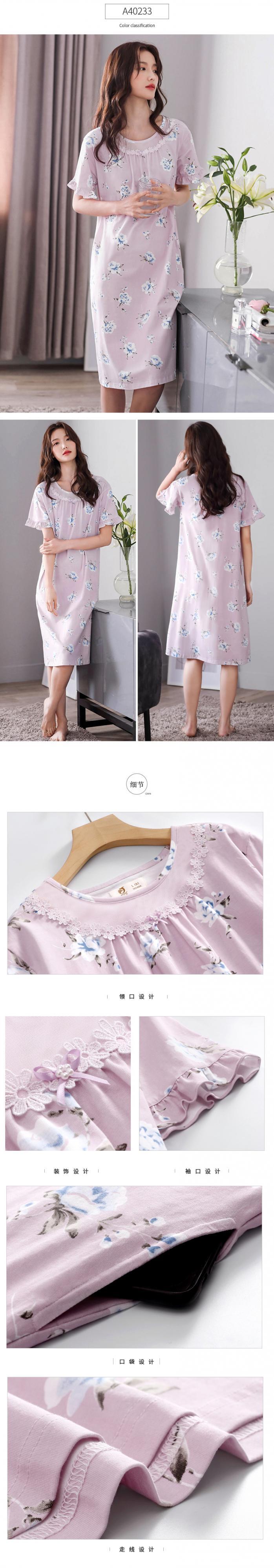 ナイトスカートレディースパジャマ夏夏薄手綿半袖長袖中年お母さんゆったりプラスサイズホームサービス jial67623685587
