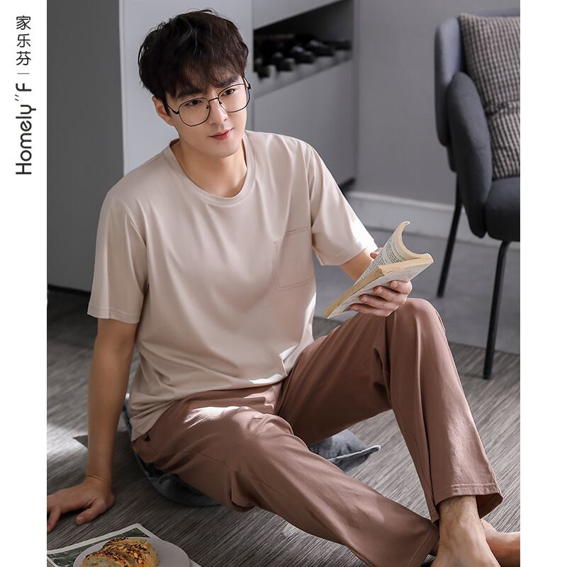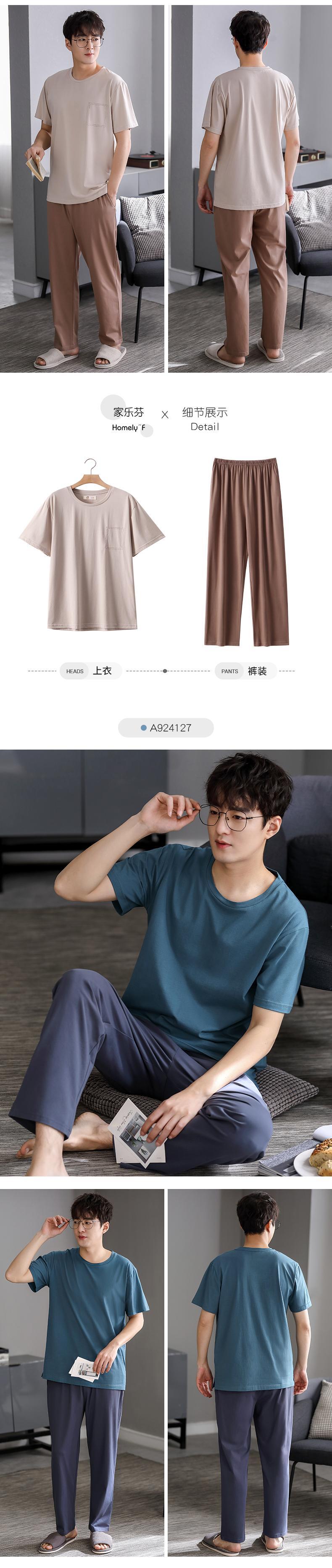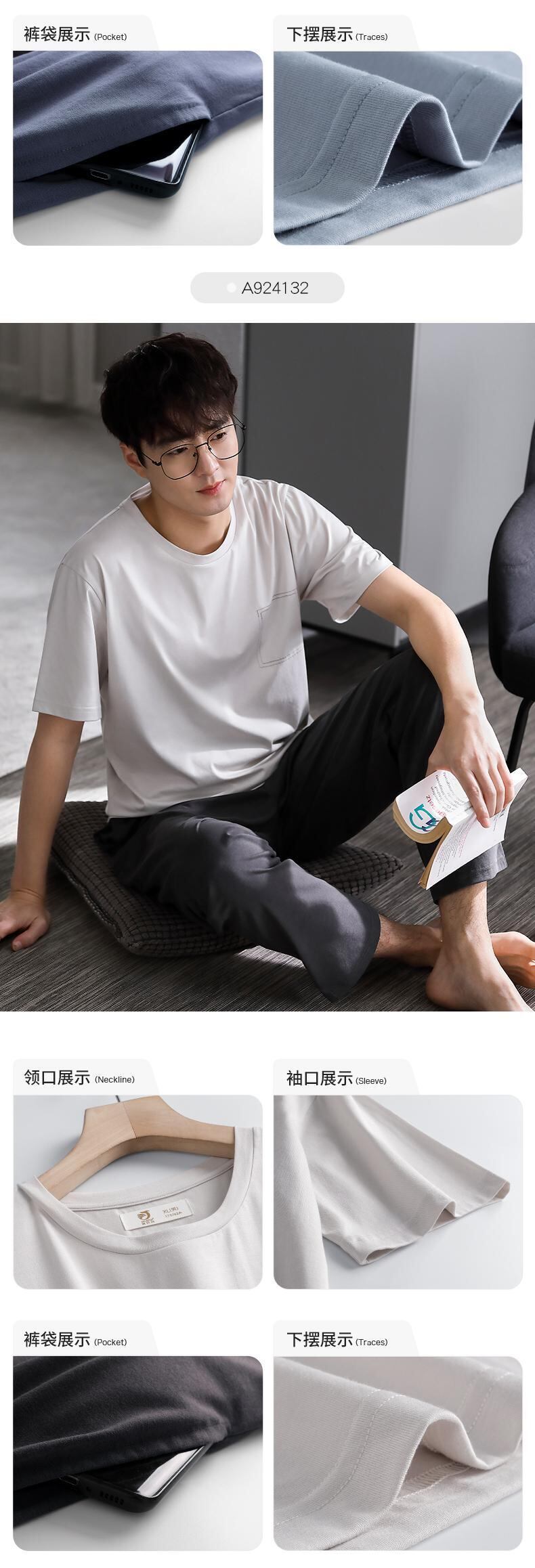 【ライクラコットン】カルフールパジャマメンズサマーコットン半袖パンツホームサービスメンズサマー薄スーツ jial406342130