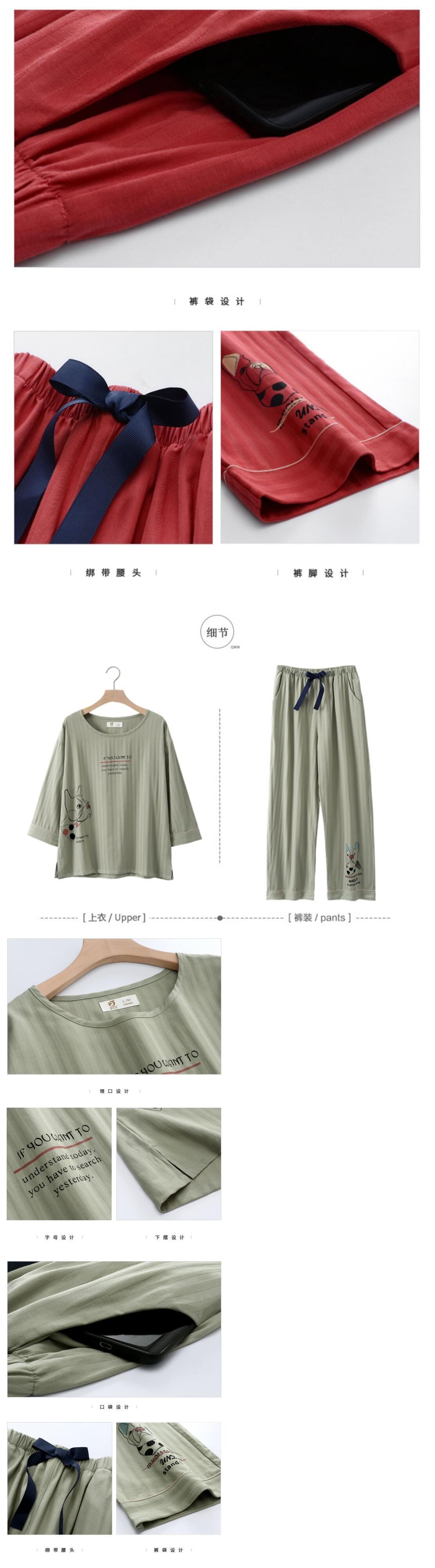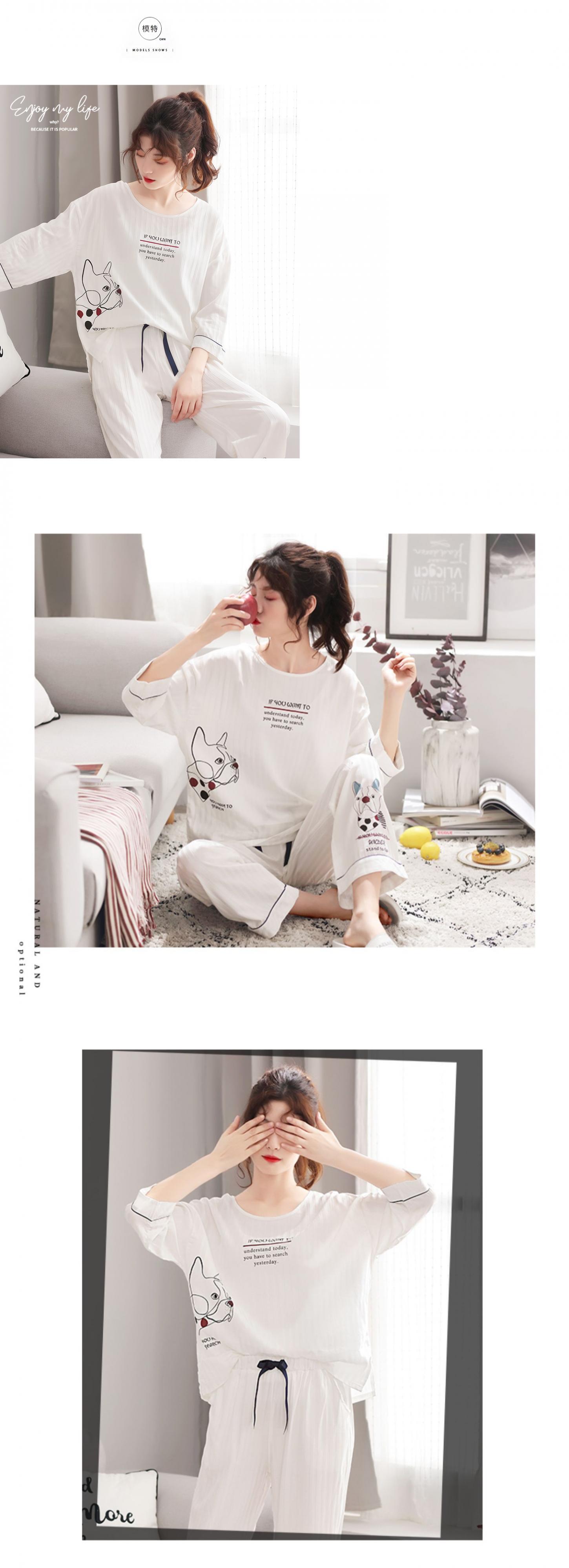 春夏の薄手のパジャマ織り、春秋女性の長袖コットン七分袖ホームウェア、レジャーにも出かけることができます jial35804986321