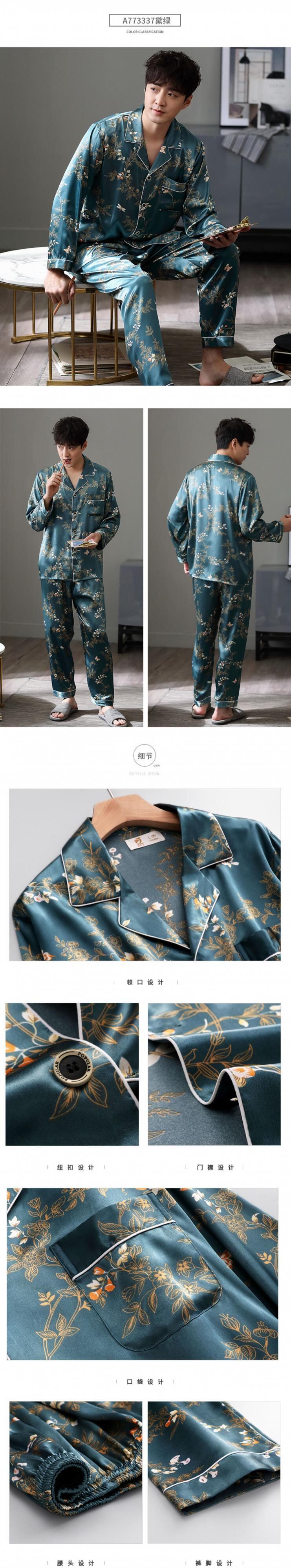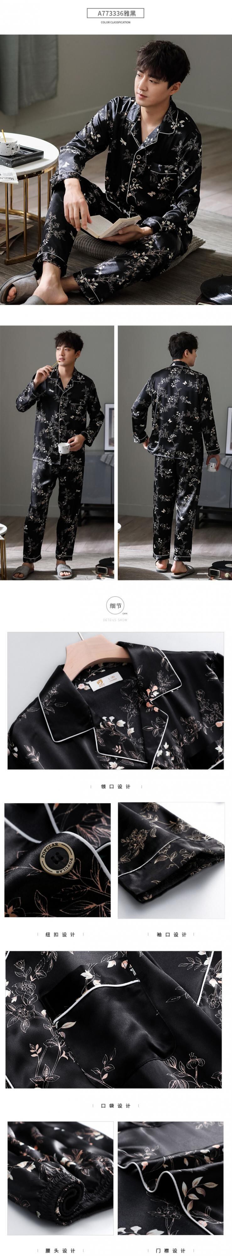 パジャマメンズ春夏夏シルクアイスシルク長袖ホームサービスメンズ春秋薄切片シミュレーションシルクスーツ jial23660582014