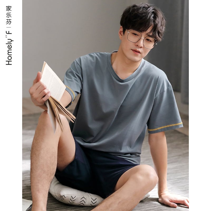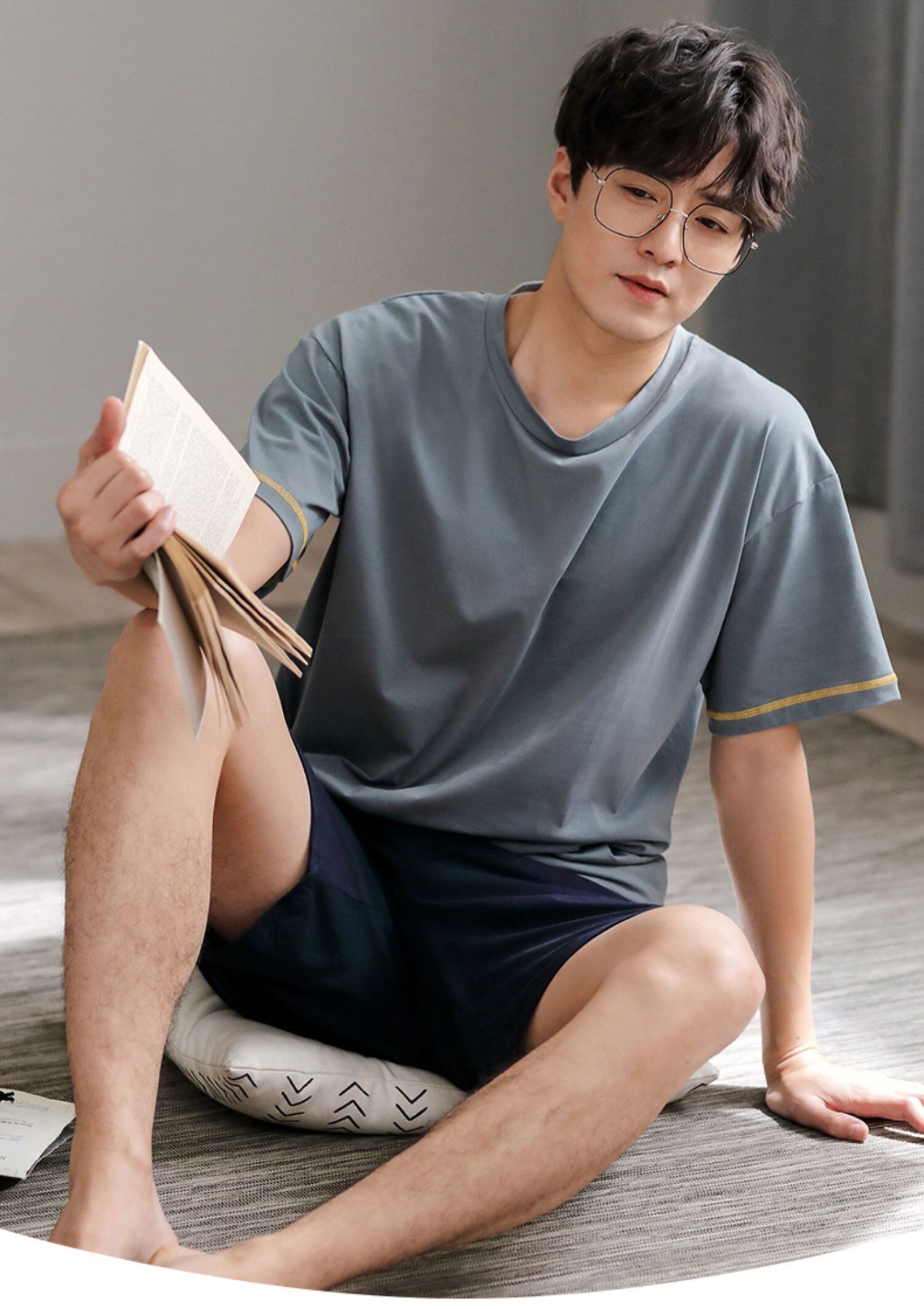 【ライクラコットン】パジャマメンズサマーコットン半袖ショーツホームサービスメンズサマー薄手メンズスーツ jial73668227979