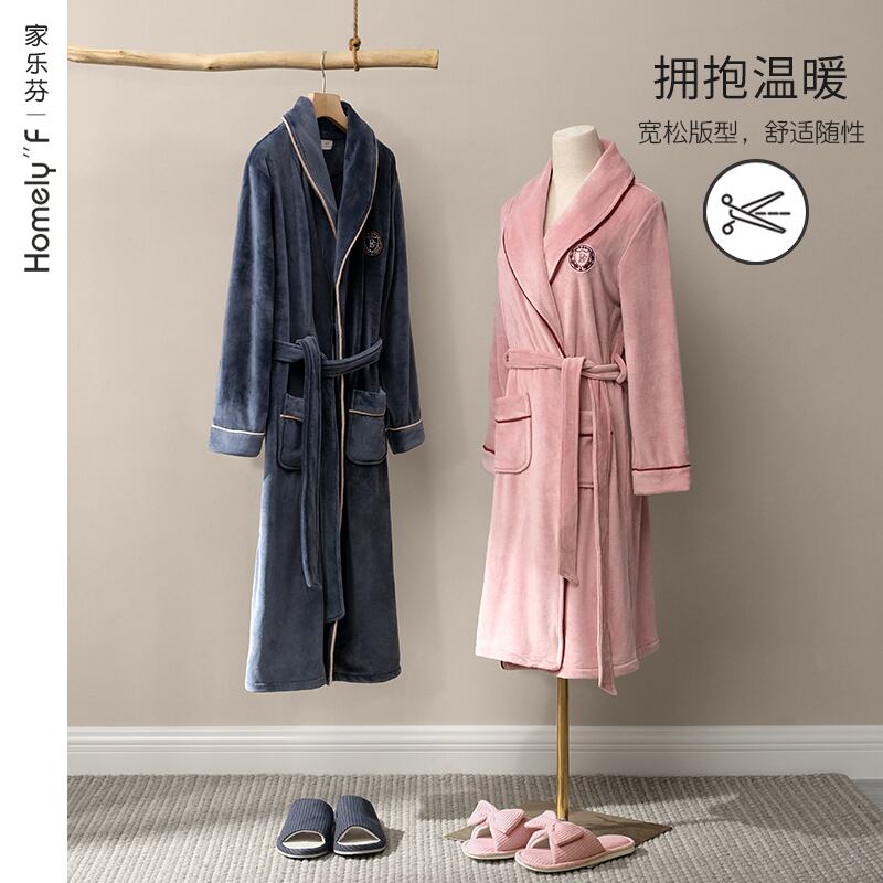 秋と冬のフランネルカップルナイトガウンメンズバスローブ女性サンゴフリースプラスベルベット暖かいナイトガウンドレッシングガウン春と秋の長い jial81912753061