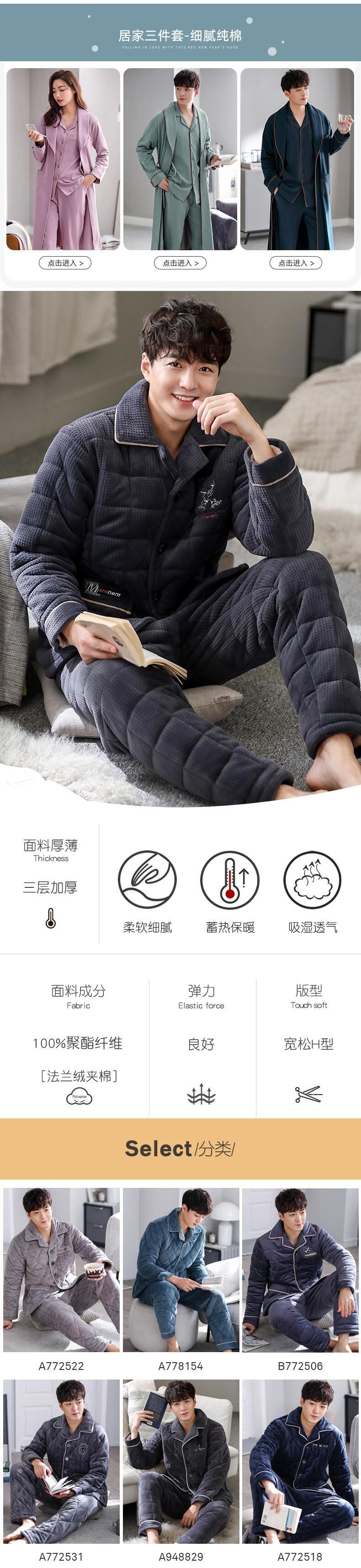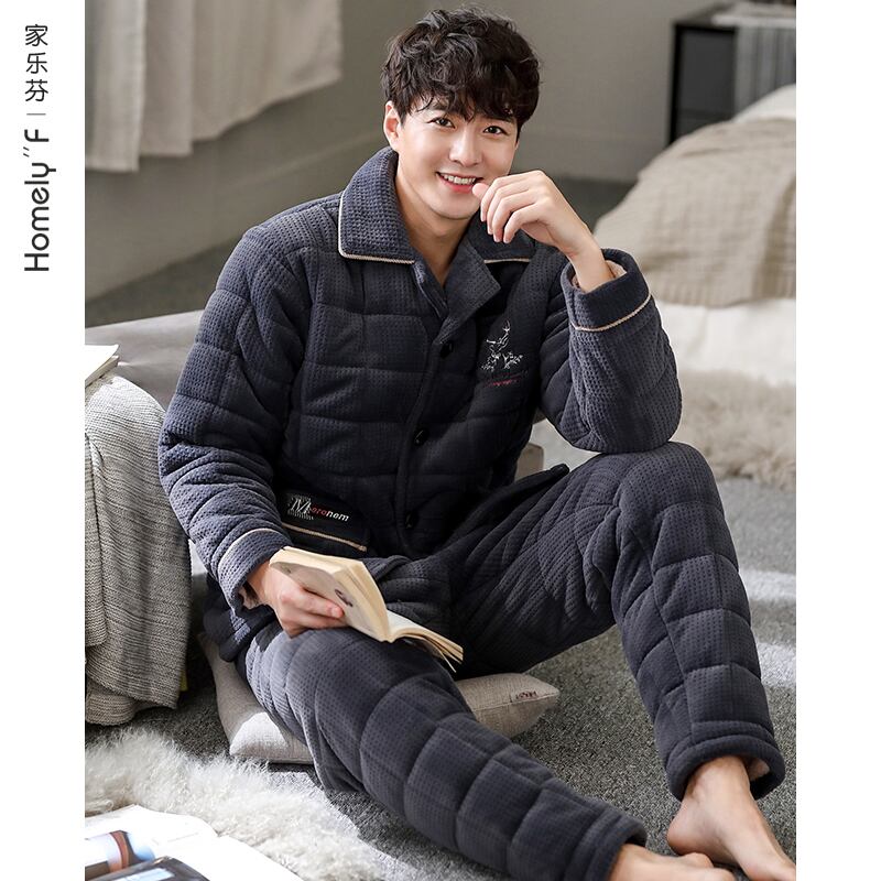 パジャマメンズ冬3層厚厚超厚キルティングプラスベルベットコーラルフランネルホームサービス秋冬モデル冬 jial61873710528