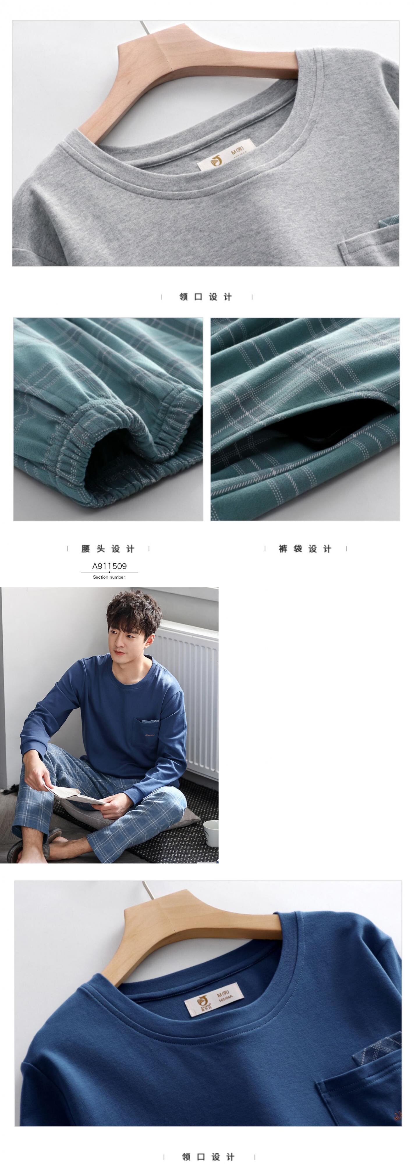 パジャマメンズ春秋ピュアコットン長袖ホームサービスメンズコットン秋冬薄手カジュアルスーツ jial71092497307