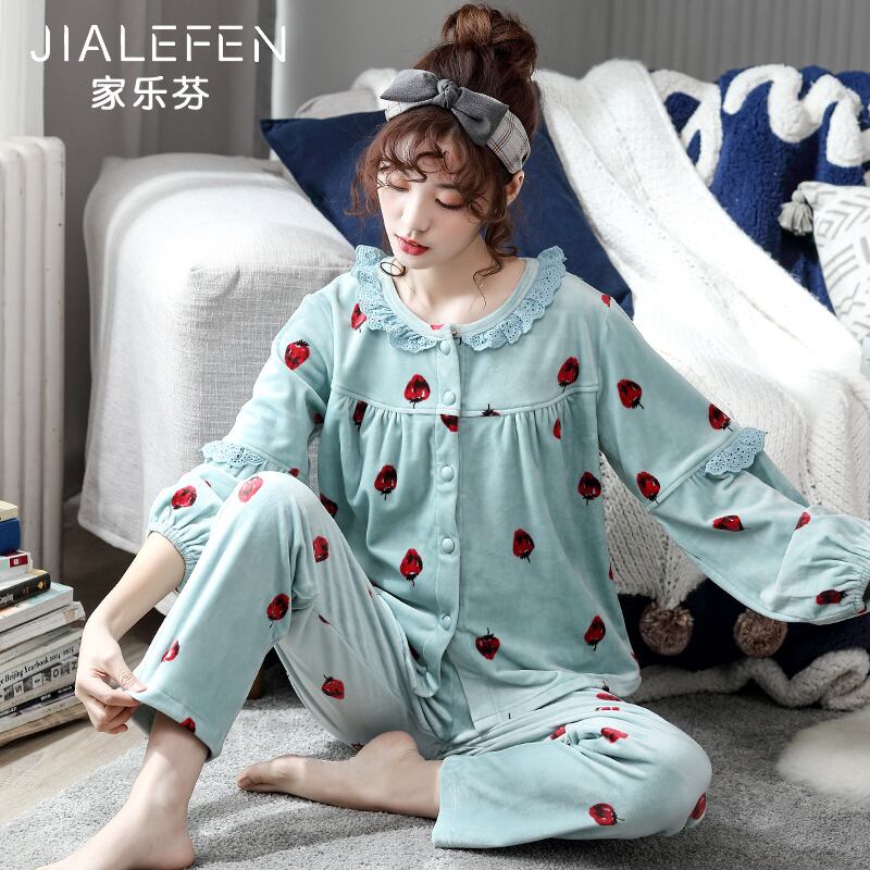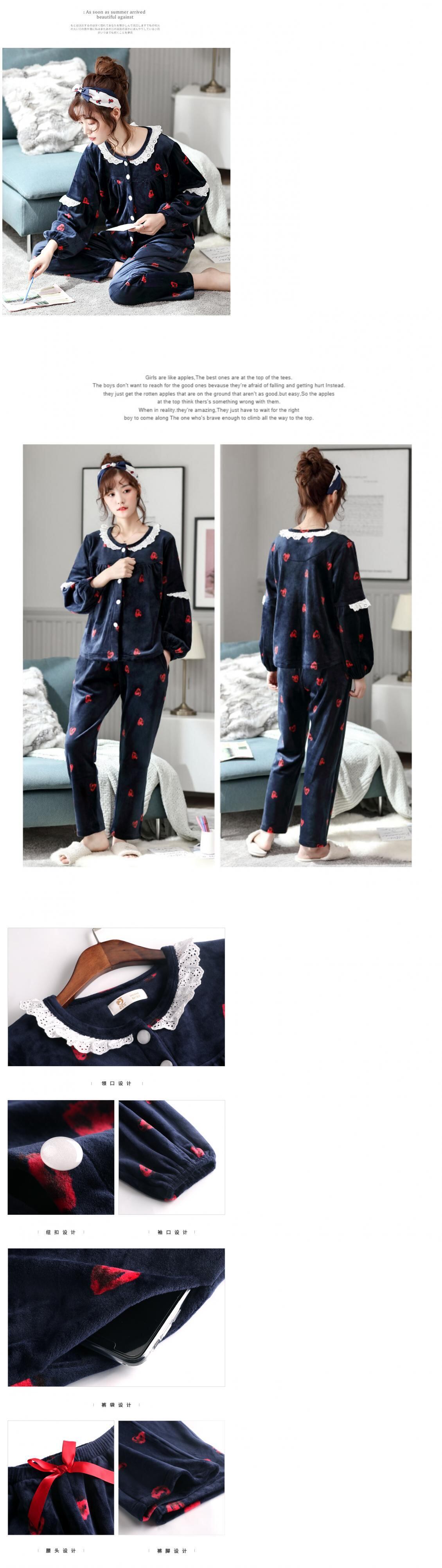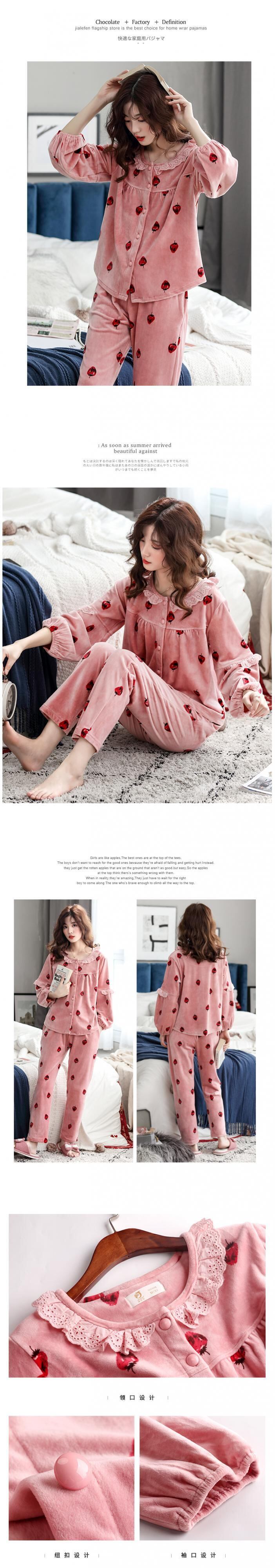 パジャマレディース春秋スタイルアイランドフリースホームウェアフランネルコーラルフリース暖かい秋冬スタイルの薄いスタイルのスーツ jial42468339503