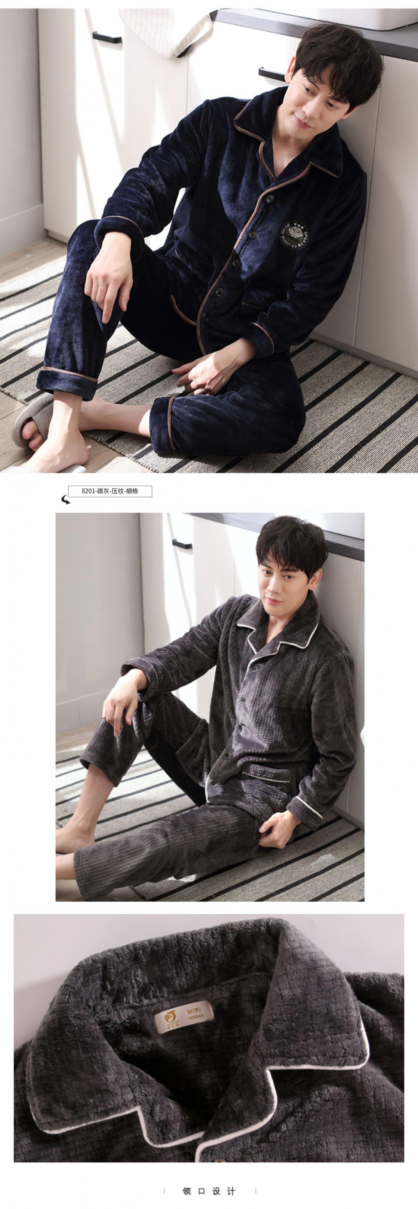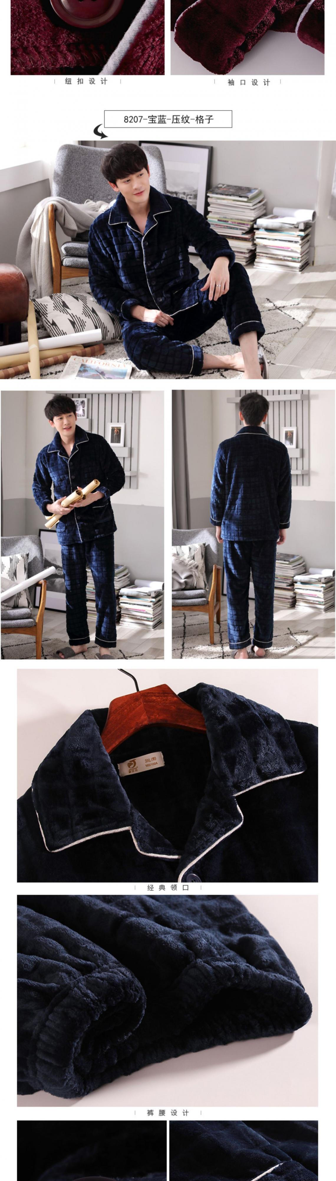 パジャマメンズ秋冬冬コーラルフリースプラスベルベット厚手の暖かさフランネルホームサービスメンズウィンタースーツ jial6290785110