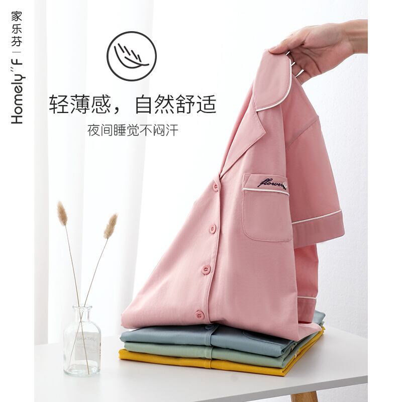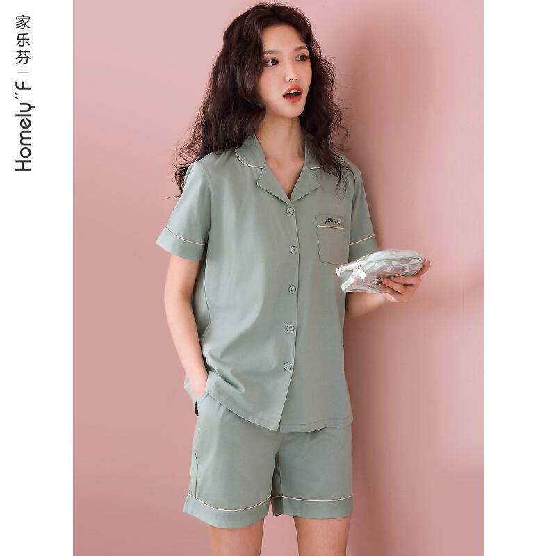 シルケット加工コットンパジャマレディースサマーコットン半袖ショーツホームサービスサマーシンコットンカーディガンプラスサイズスーツ jial99953573104