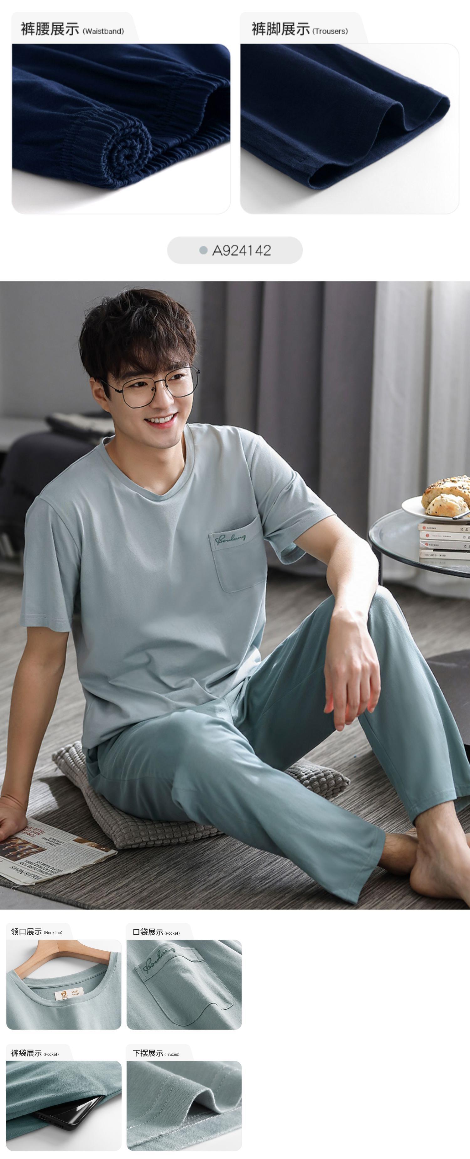 【ライクラコットン】パジャマメンズサマーコットン半袖パンツホームサービスサマーシンコットンカジュアルは屋外でも着用可能 jial11940375792