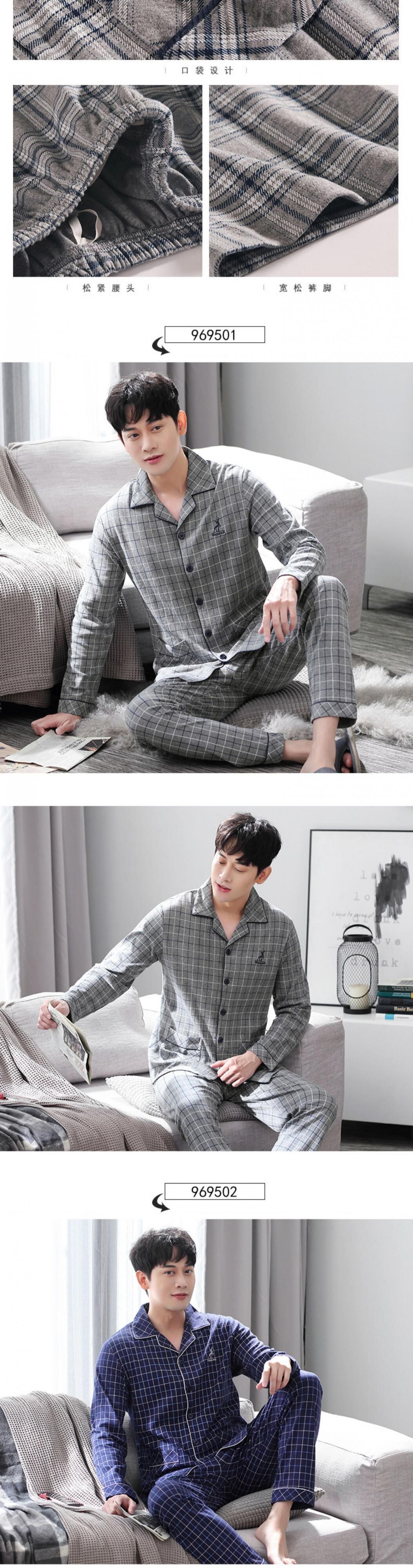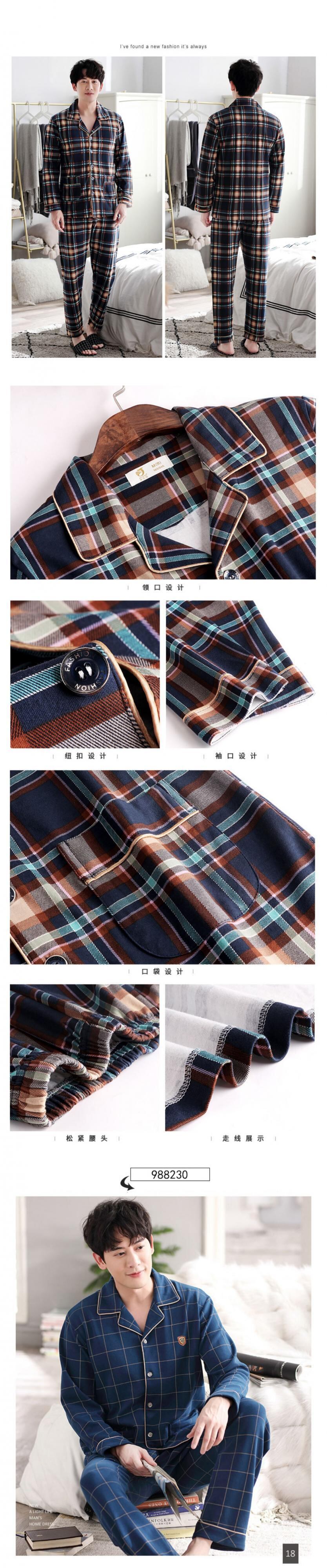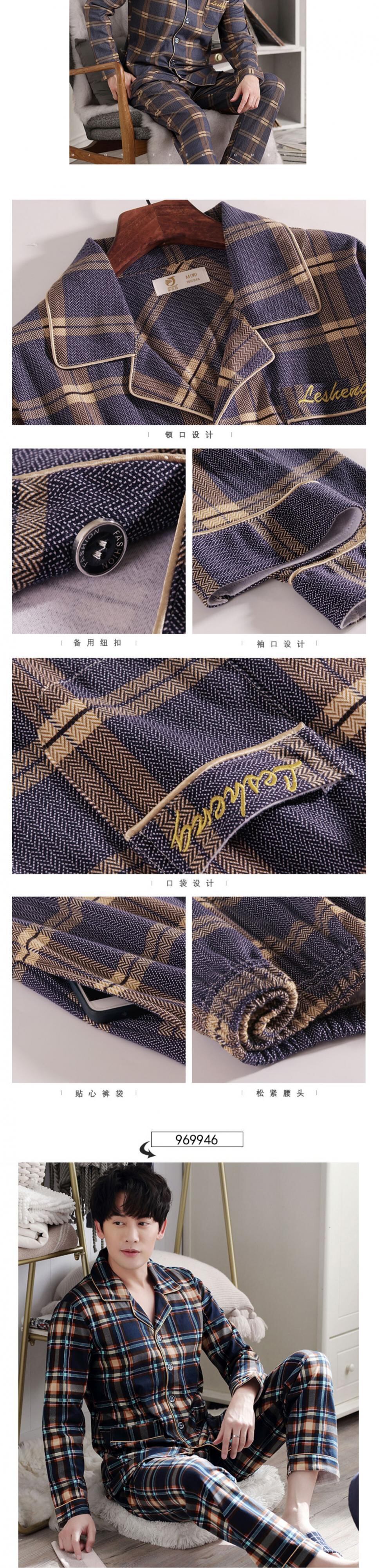 パジャマメンズ春秋ピュアコットン長袖ホームサービスメンズコットン薄手チェック柄ファーザープラスファットプラスサイズスーツ jial53401890187