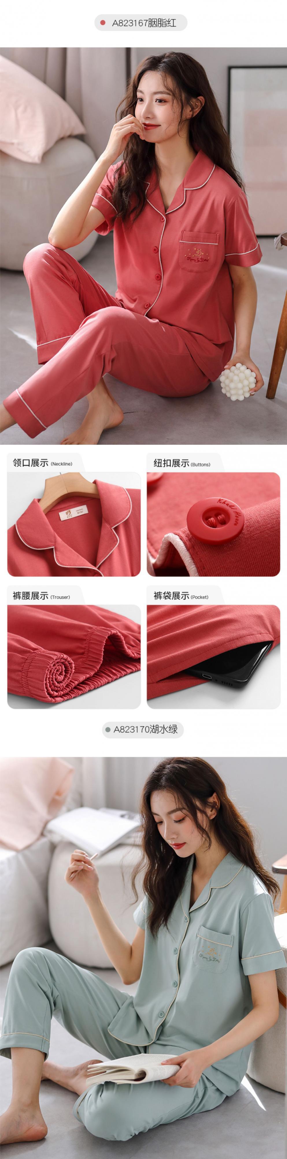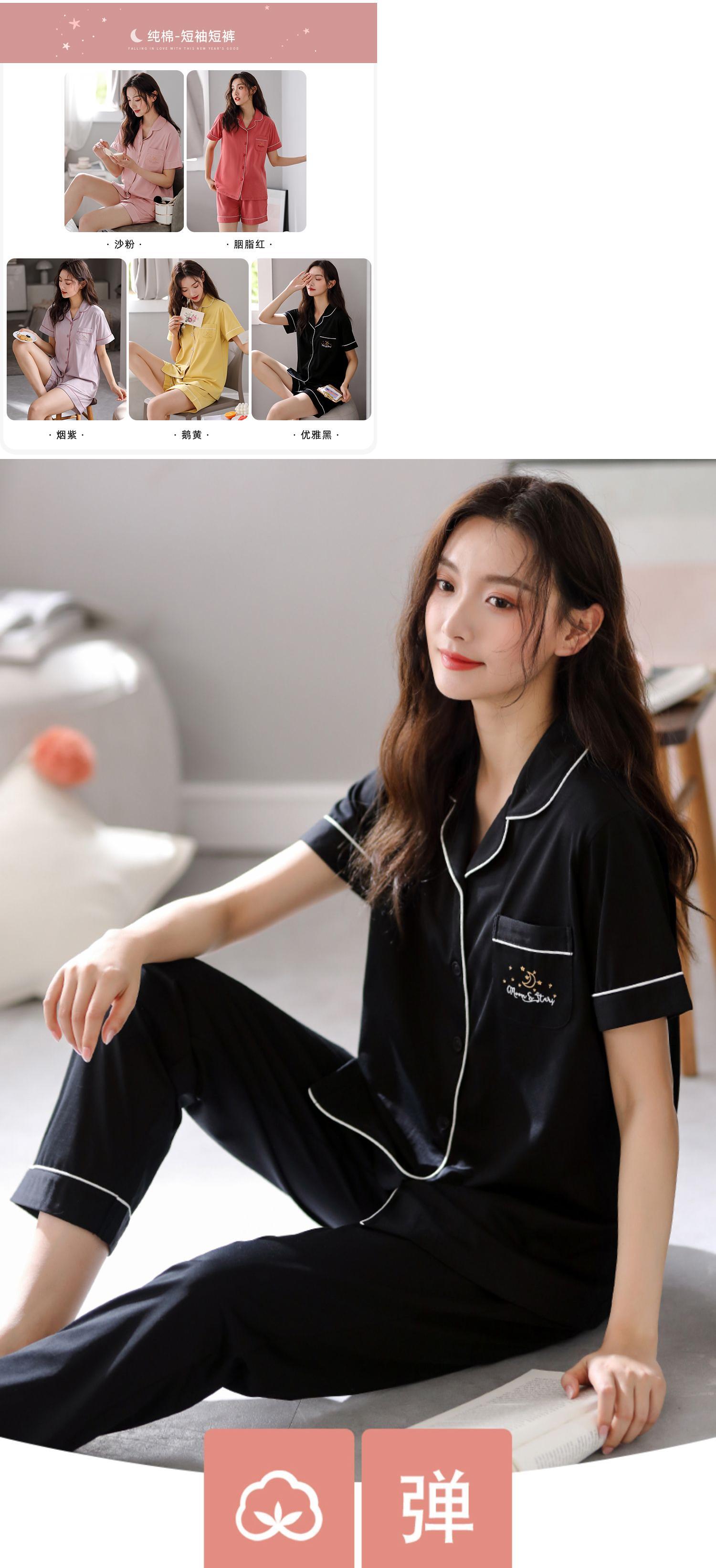 パジャマレディースサマーコットン半袖パンツホームサービスサマーサマー薄手のコットンカーディガンプラスサイズのスーツ jial56376152483