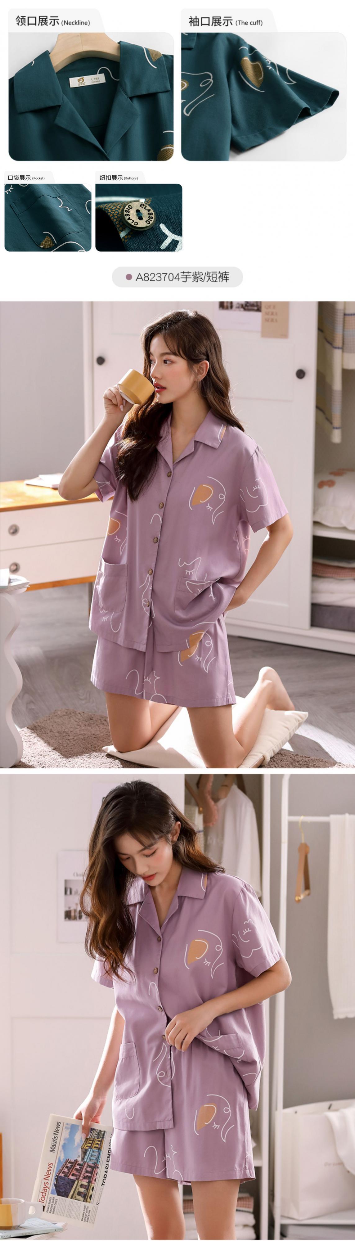 Lenzingモーダルパジャマレディース夏半袖ショーツホームサービス夏薄アイスシルクラージサイズツーピーススーツ jial36583295858
