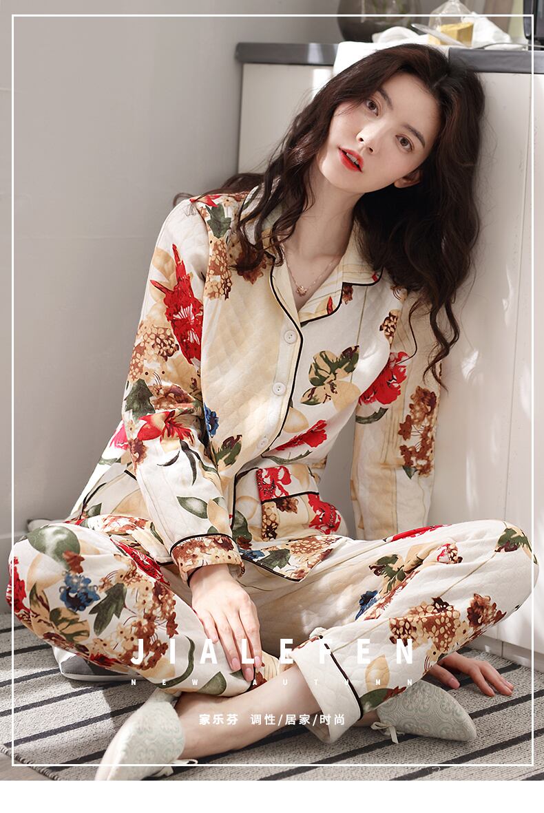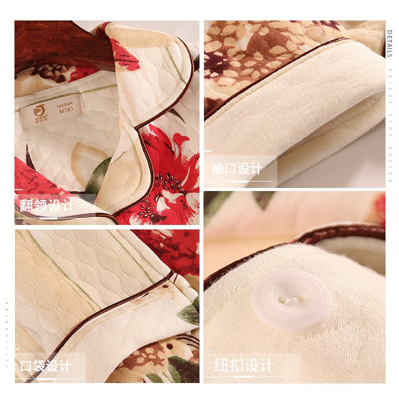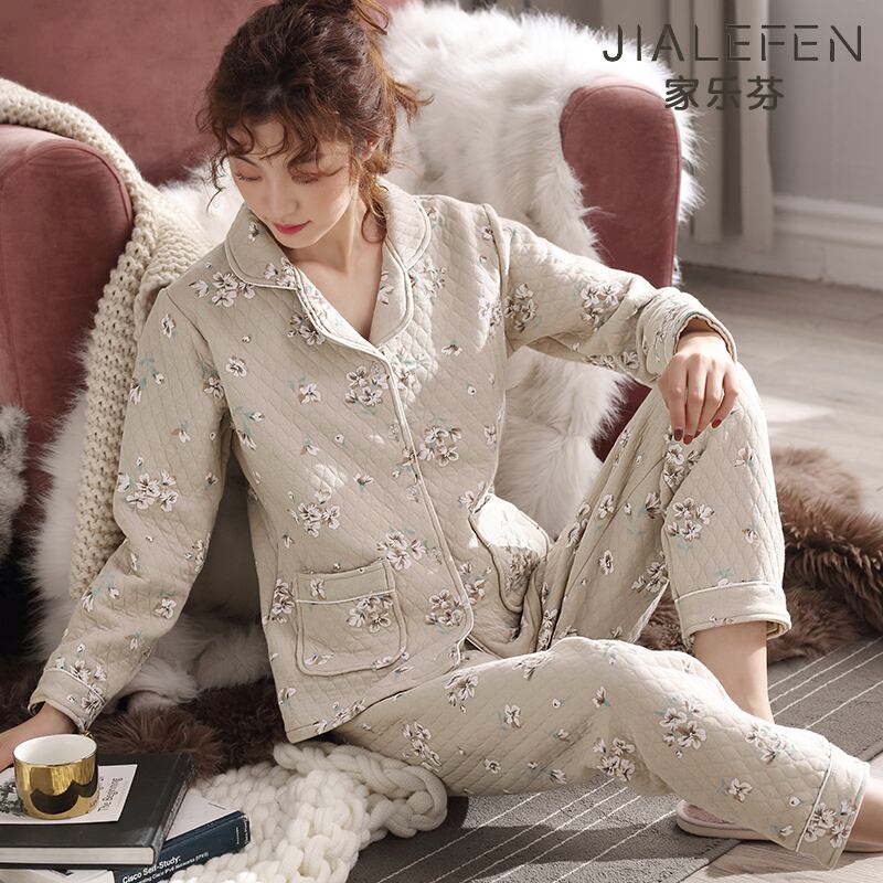 パジャマレディース春秋厚手の純綿長袖秋冬薄手サンドイッチ暖かい中年マザースーツ jial63696875469
