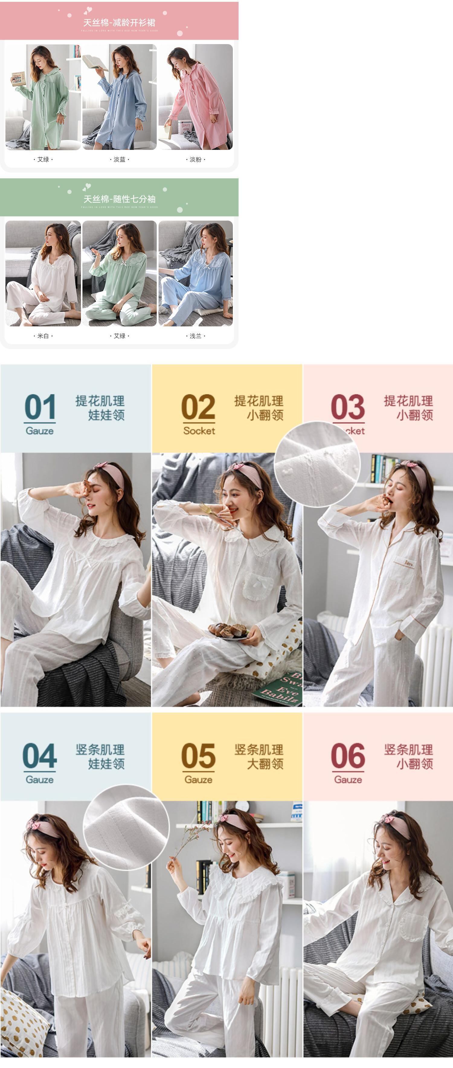 【テンセルコットン】ネグリジェパジャマ春秋夏アイスシルク薄手七分袖長袖モーダルロングロングラージサイズ jial68513872421