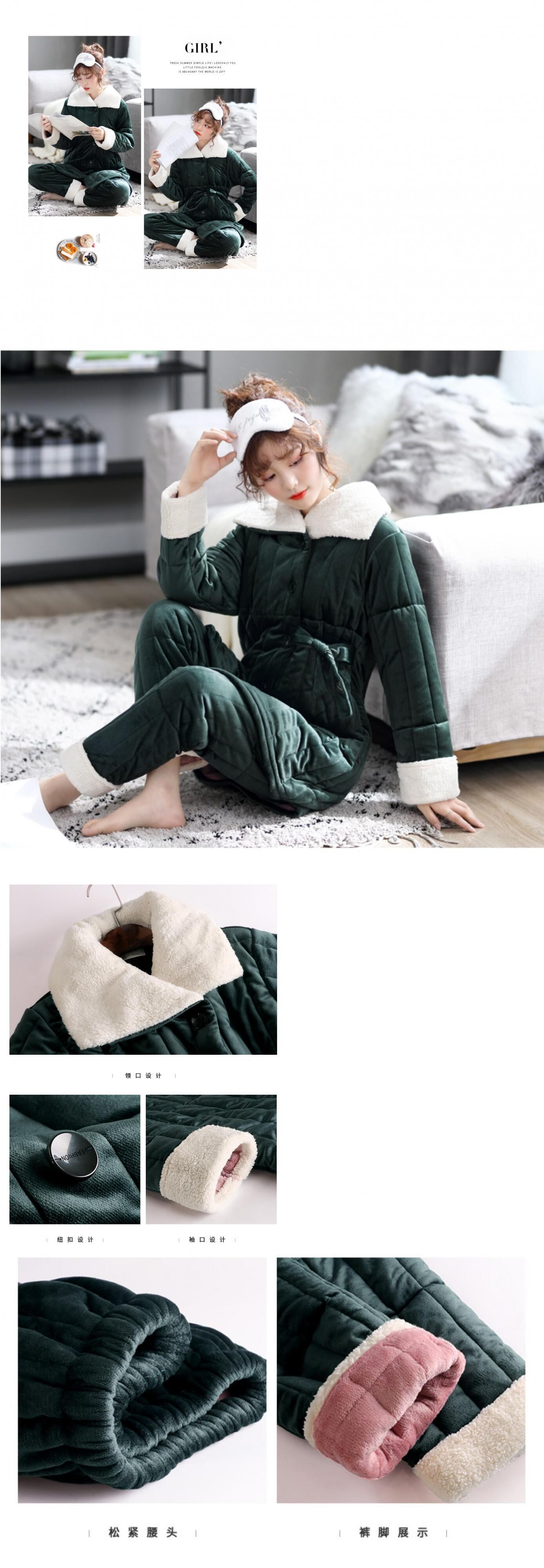 パジャマ女性冬3層増粘プラスフリースキルト秋冬サンゴフリース暖かさフランネルホームサービスロングセクション jial76715772821