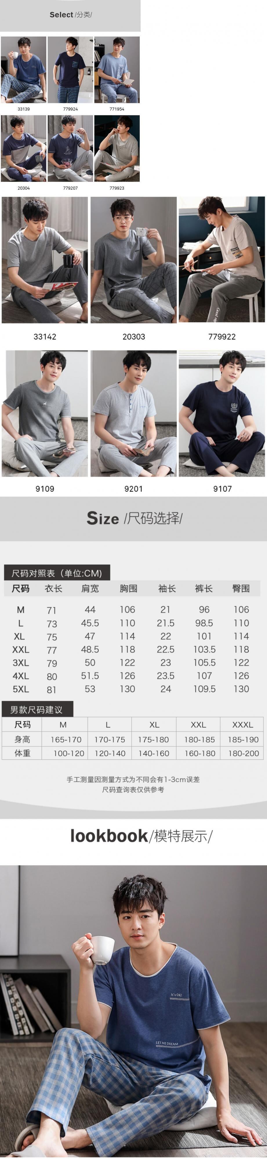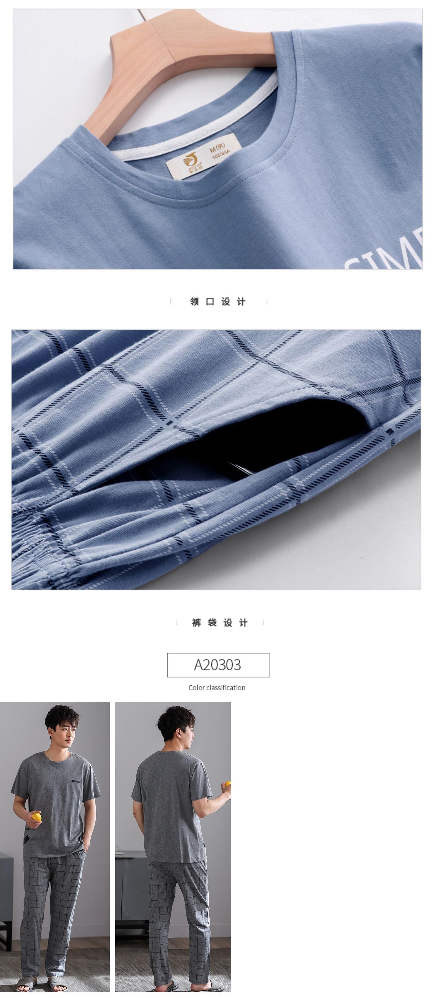カルフールパジャマメンズサマーコットン半袖パンツプルオーバーホームサービスサマーラージサイズ薄手コットンスーツ jial45335962402