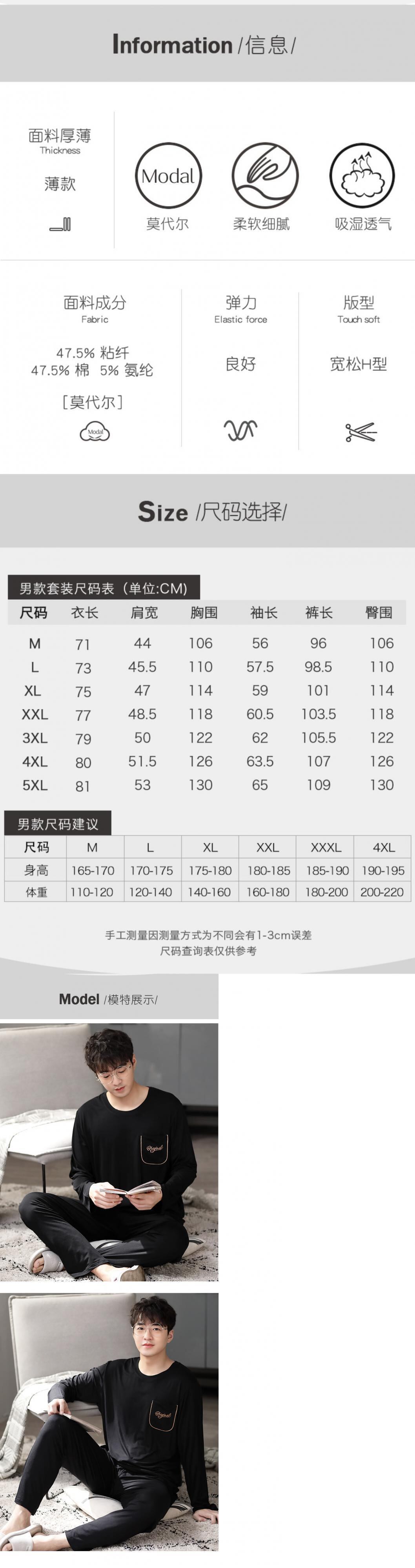 パジャマメンズ春秋モーダルコットン長袖ホームウェアメンズカジュアル春夏夏薄スーツ jial92004309946