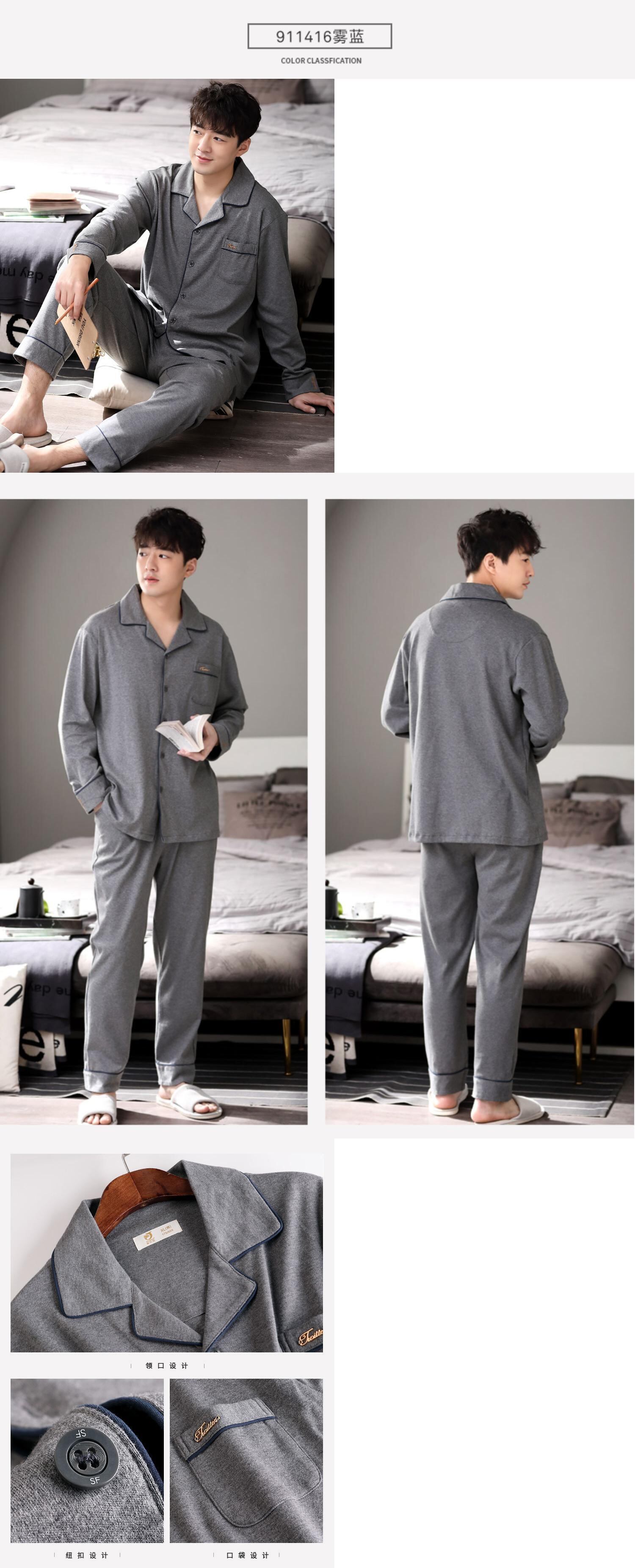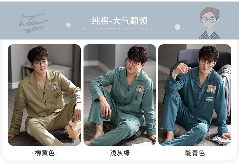 パジャマメンズ春秋モデルと秋コットン長袖ホームサービスメンズメンズコットン秋冬モデル薄スーツ jial38638578758