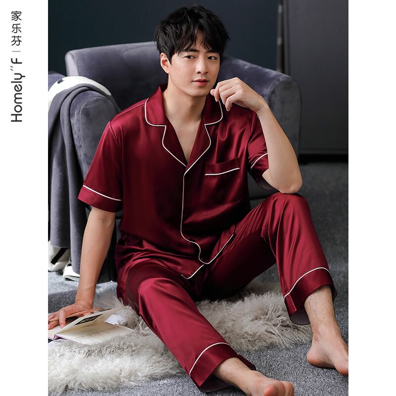 パジャマメンズサマーシルクアイスシルク薄手の半袖パンツホームサービスサマーシミュレーションシルクビッグレッド出生年 jial98383206066
