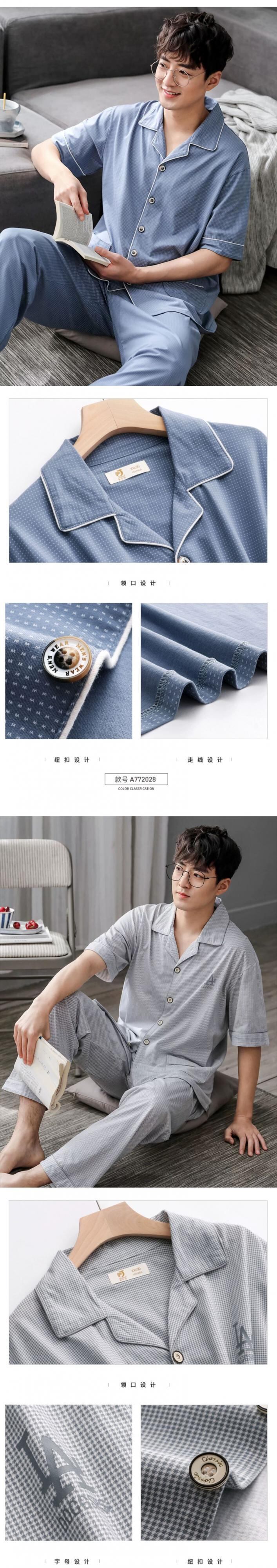 Jialefenパジャマメンズサマーコットン半袖パンツホームサービスメンズメンズサマーシンコットンスーツ jial32467655286