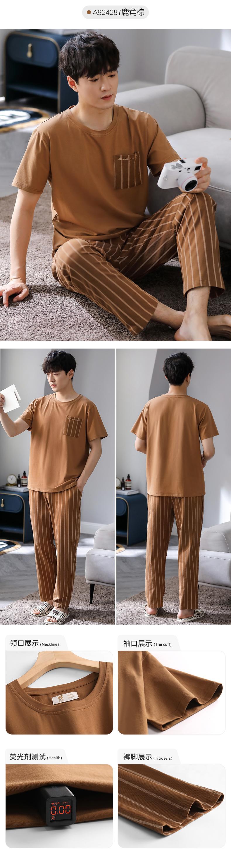 2021年新作パジャマメンズサマーコットン半袖パンツホームサービスメンズサマー薄手コットンスーツ jial52273498417