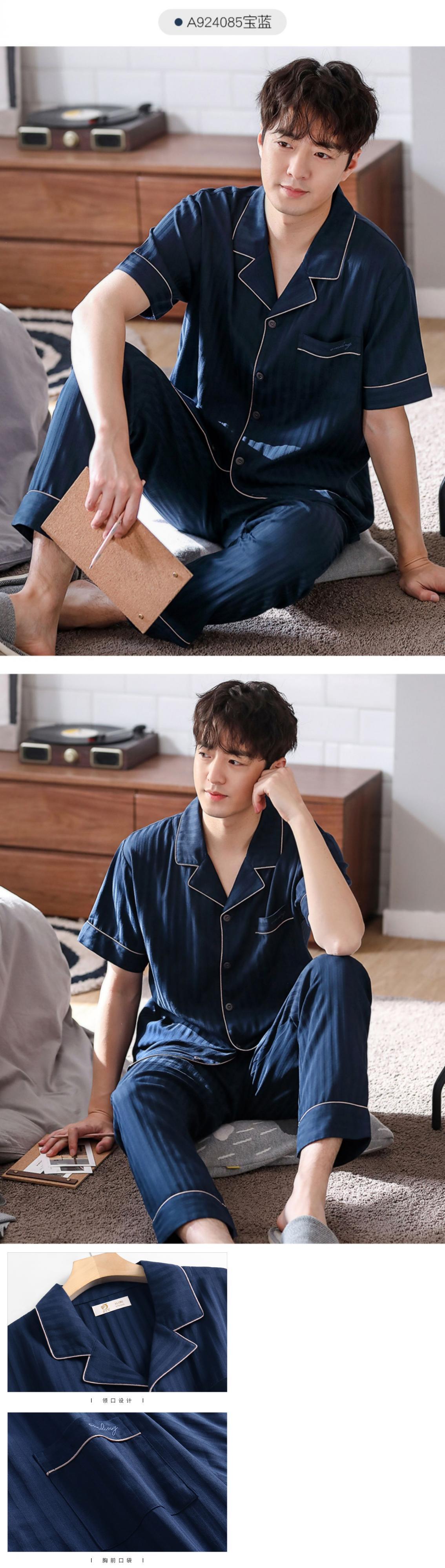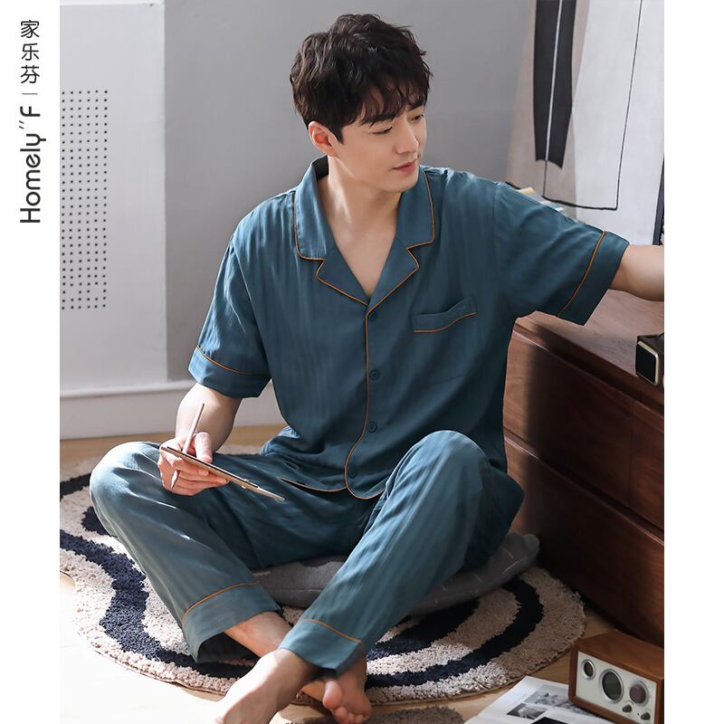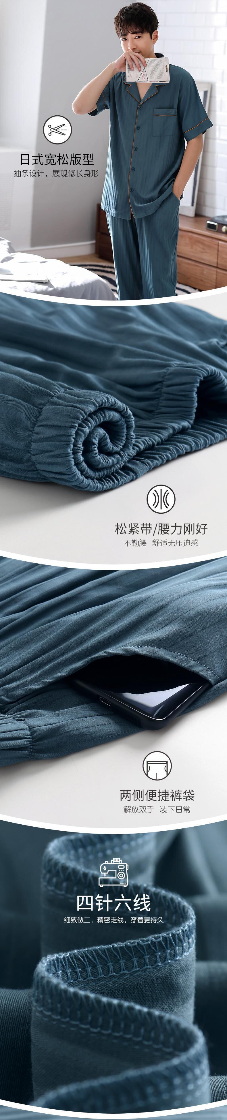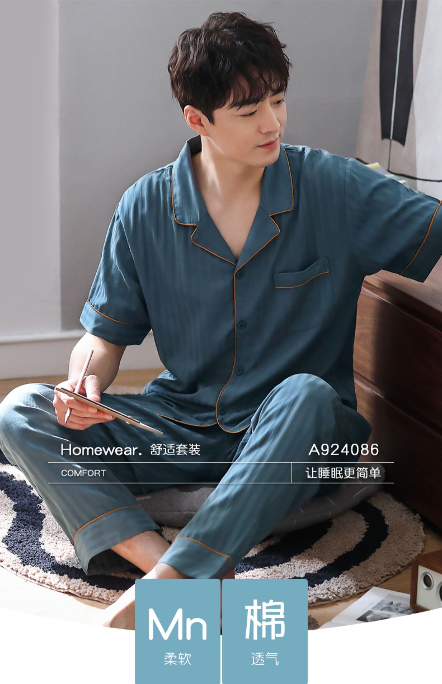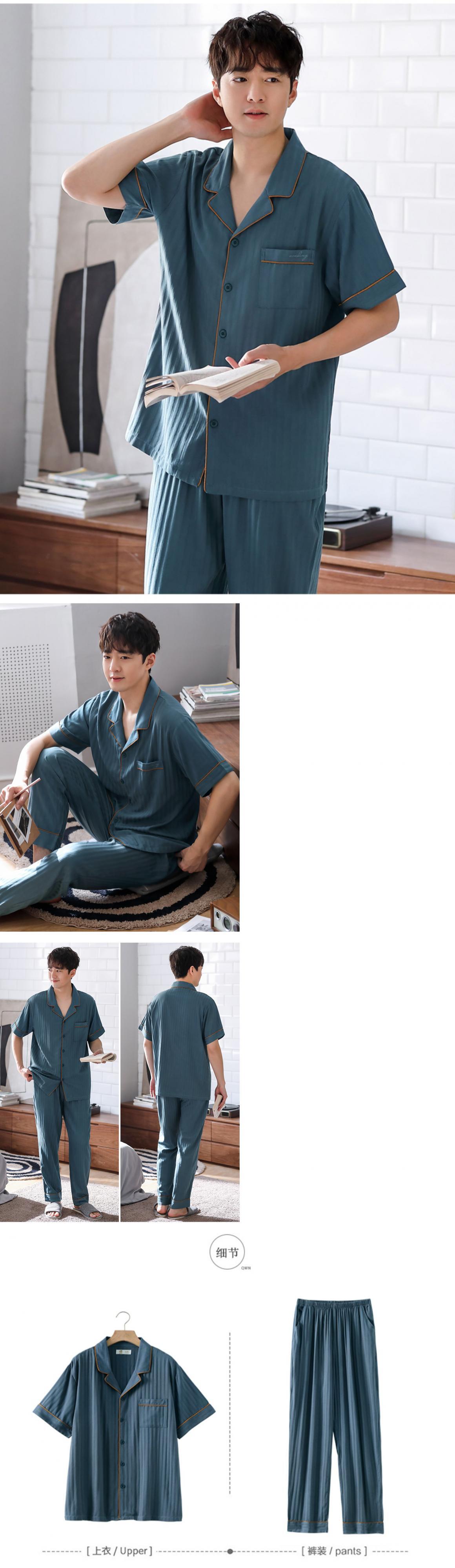 織り綿ガーゼパジャマメンズ夏綿半袖ズボンホームサービス夏薄綿半袖スーツ jial55874184260