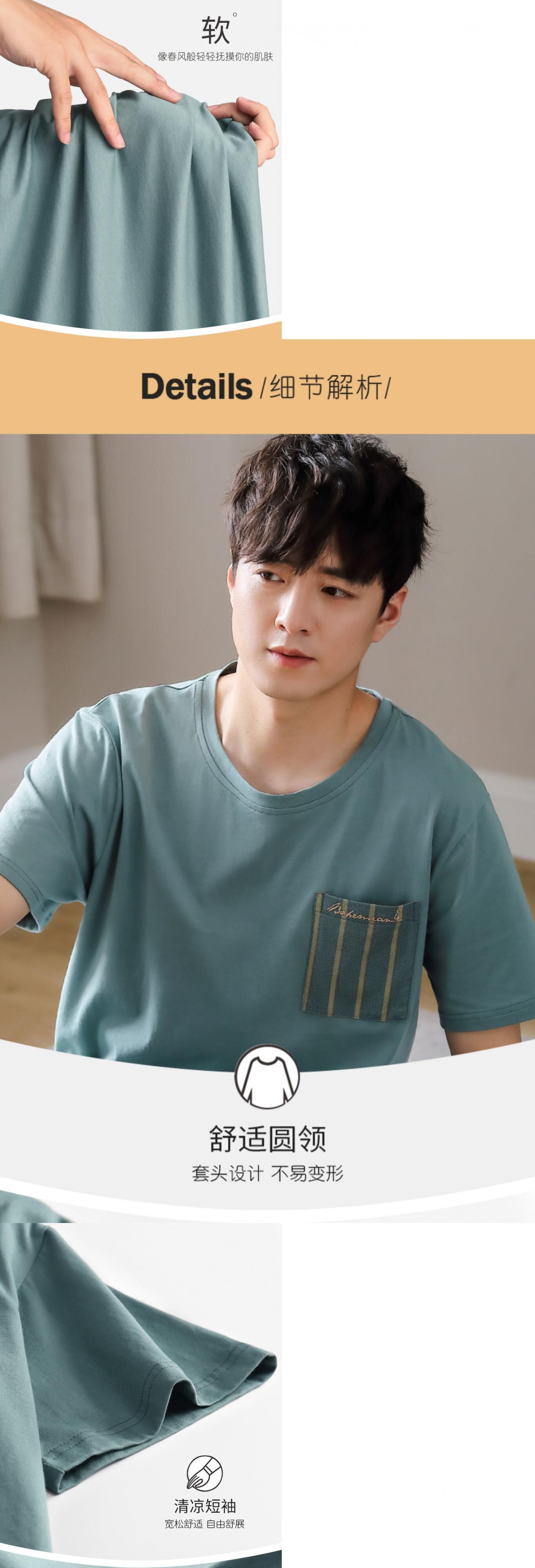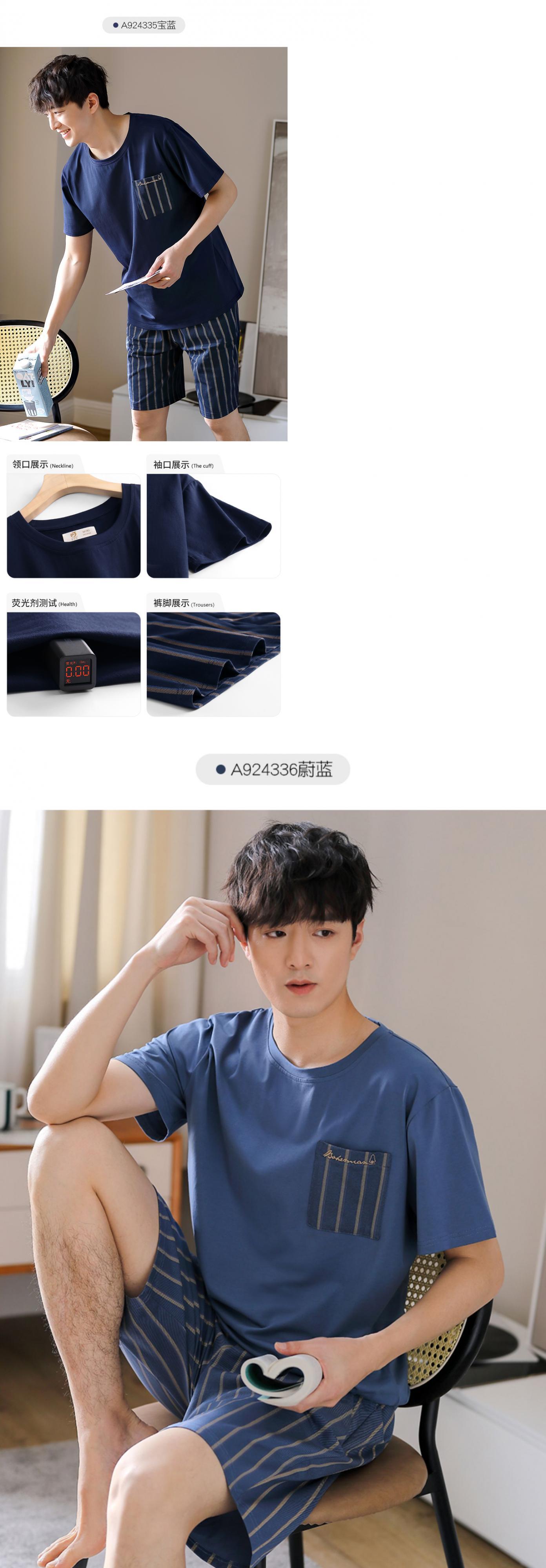 パジャマメンズサマーコットン半袖ショーツホームサービスメンズサマー薄手コットンカジュアルプラスサイズスーツ jial46805277959