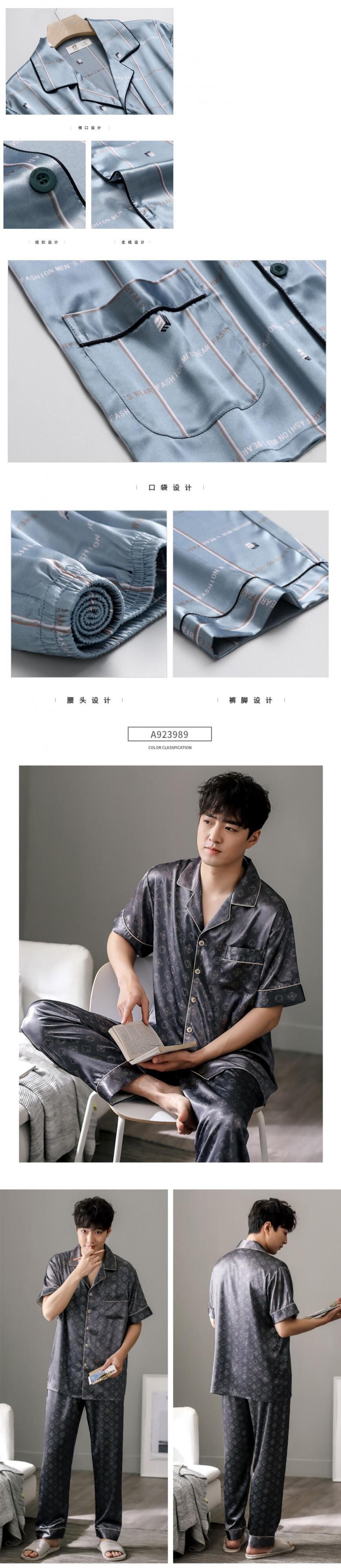 パジャマメンズサマーシルクアイスシルク半袖パンツホームサービスメンズサマーシンシルクスーツ jial24650255023
