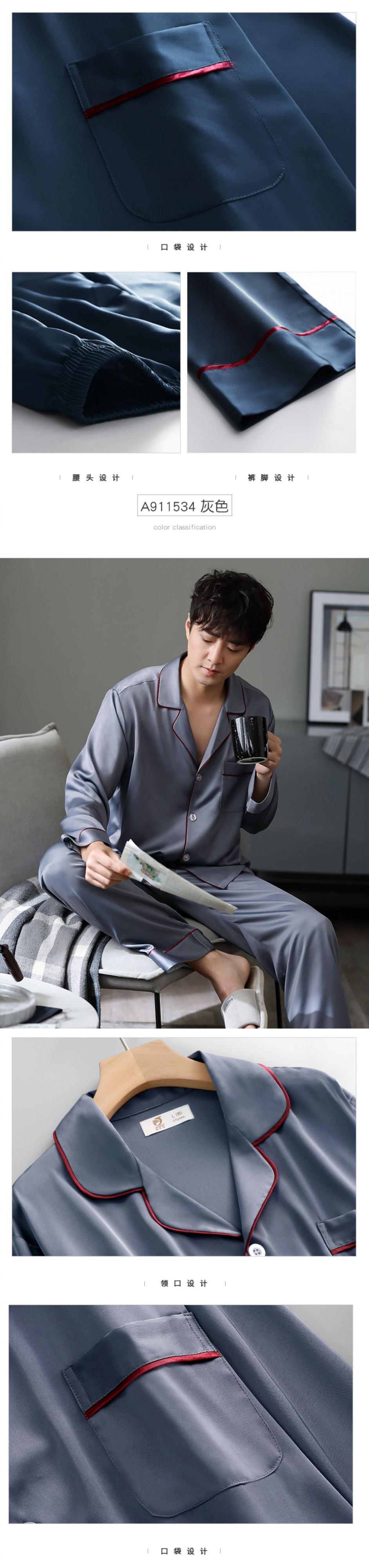 パジャマメンズ春夏夏シルクアイスシルク長袖ホームサービス春秋薄切片模造シルクブラックスーツ jial24295476138