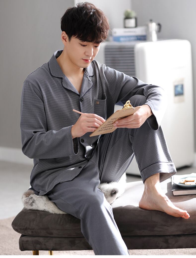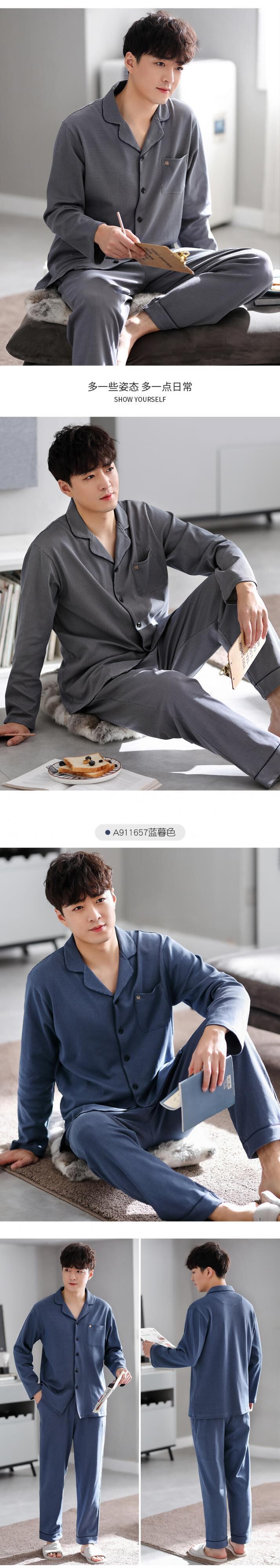 Jialefenパジャマメンズ春秋モデル秋秋純綿長袖ホームウェア綿春夏薄手のスーツ jial41838383267