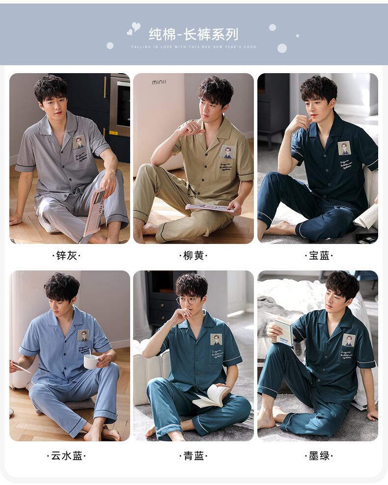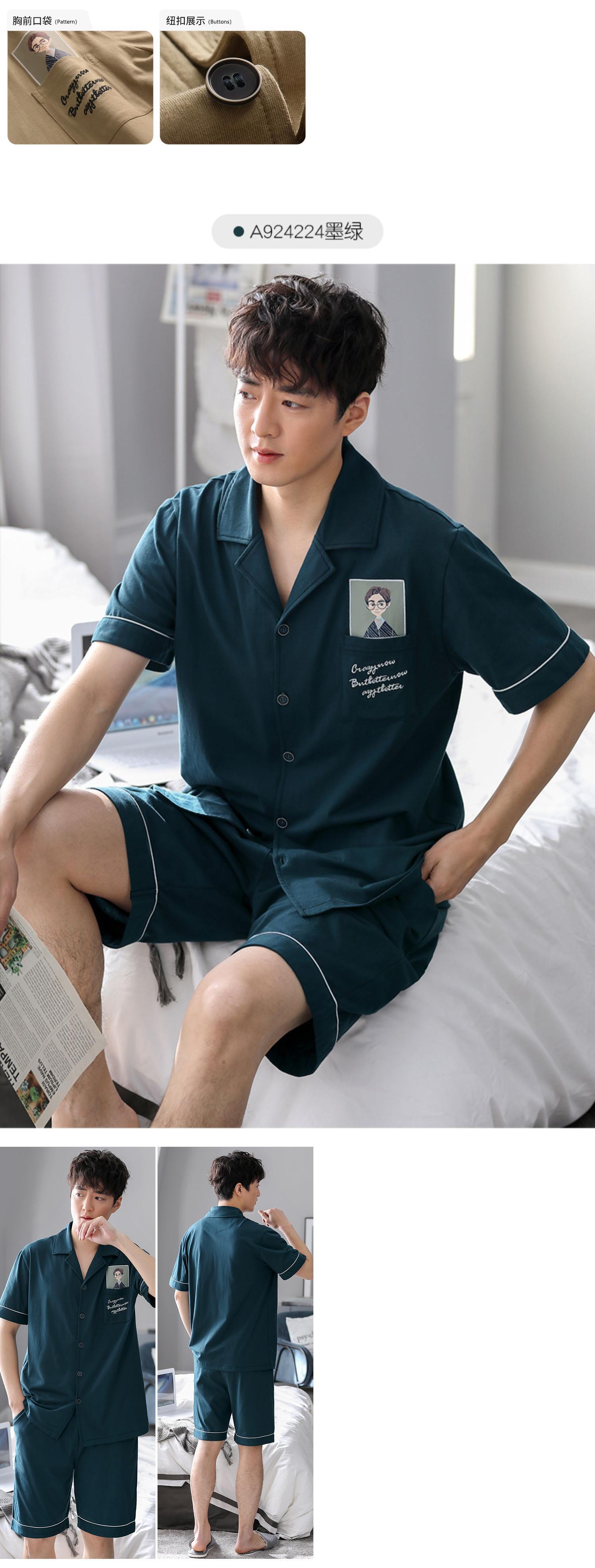 2021年新作パジャマメンズサマーコットン半袖ショーツホームサービスメンズサマー薄手コットンスーツ jial30883063995