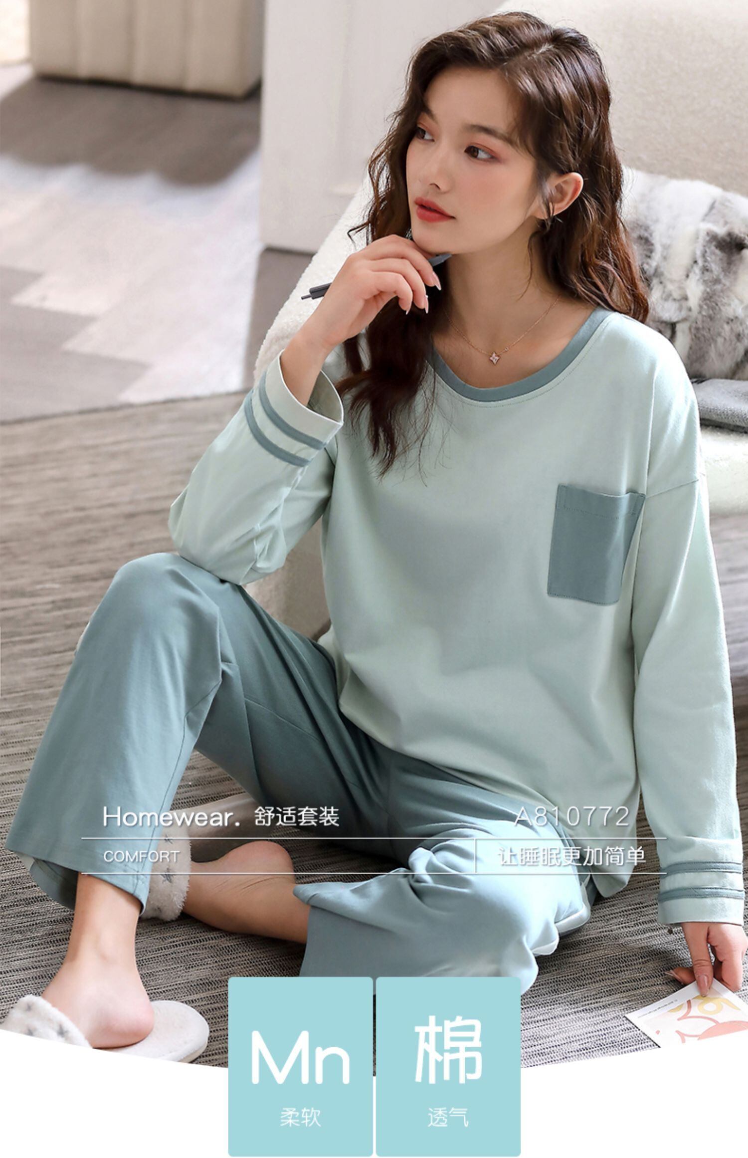 Jialefenパジャマレディース春と秋のモデル秋の綿長袖ホームサービス綿春と夏の薄い大きなサイズのスーツ jial6632514717