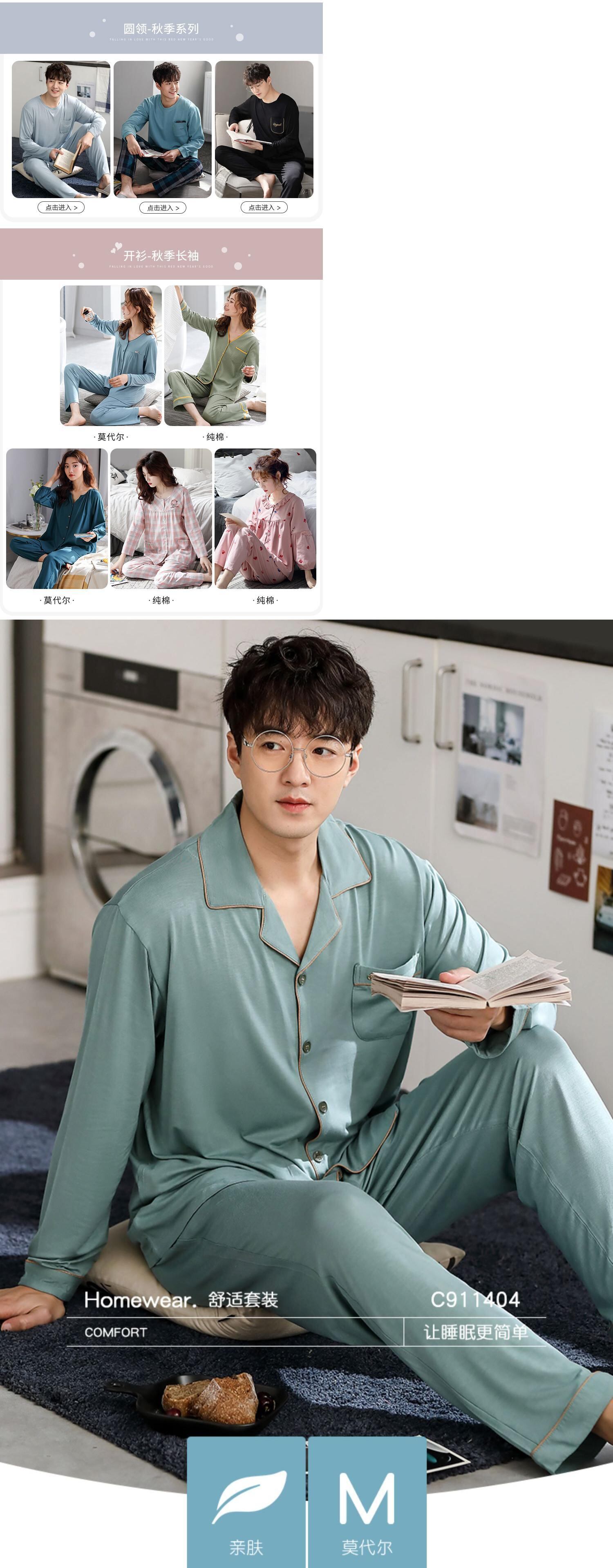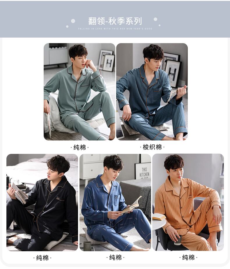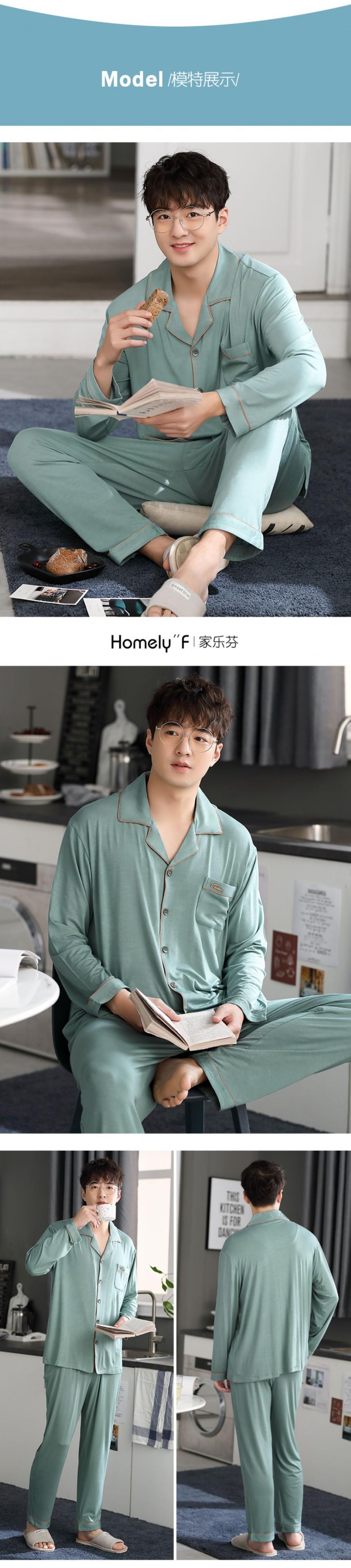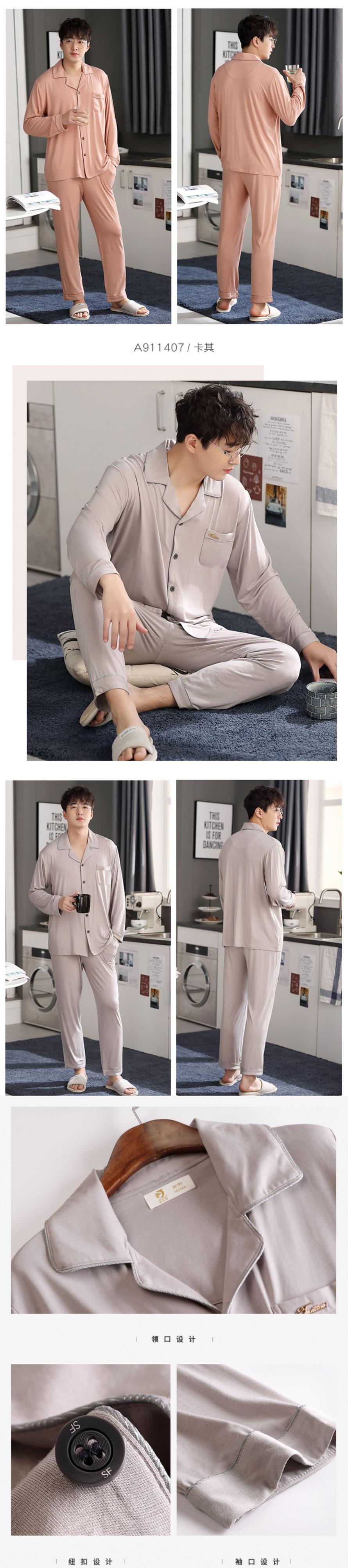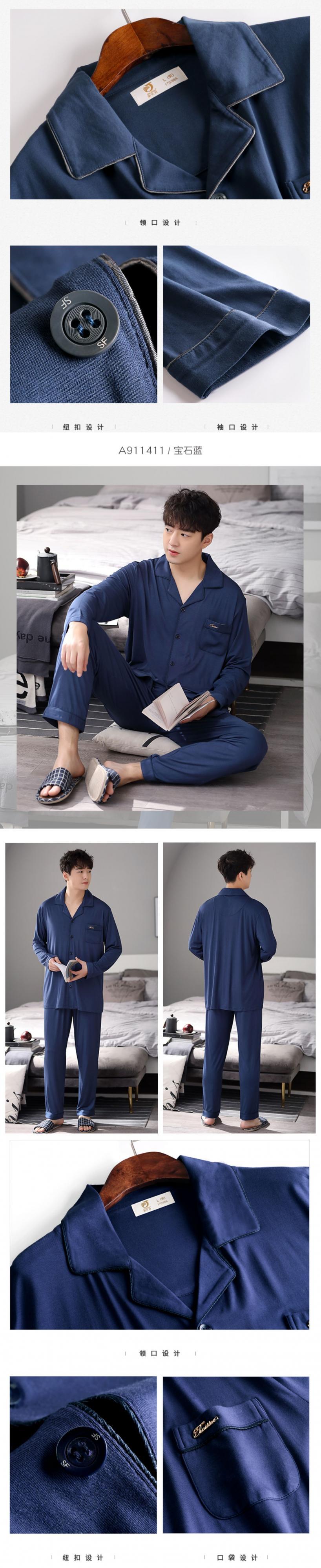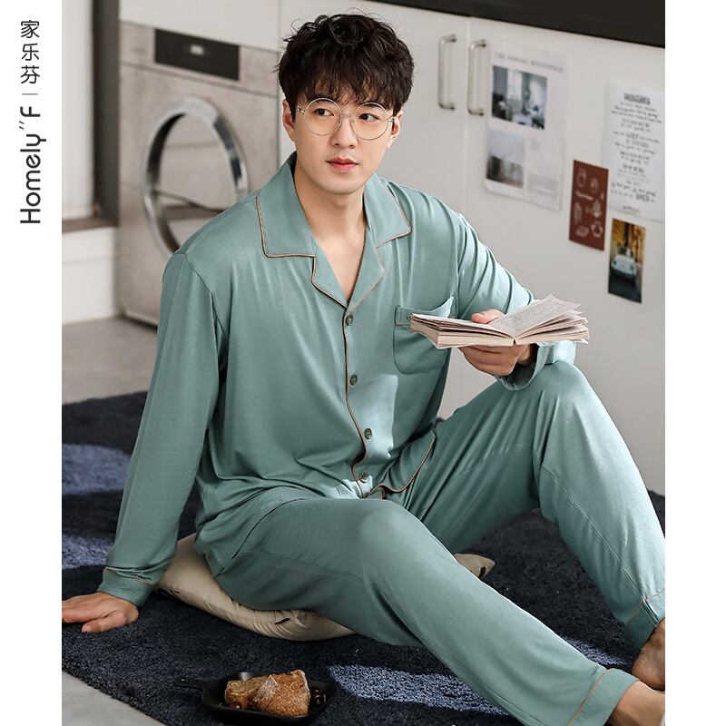 パジャマメンズ春夏モーダルコットンシルク長袖ホームサービスメンズ春秋秋薄氷シルクスーツ jial76115596399