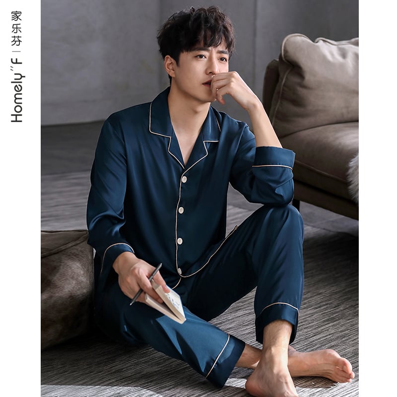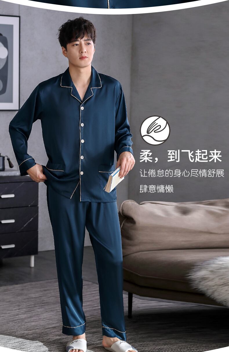 パジャマメンズ春夏シルクアイスシルク長袖ホームサービスメンズ薄春秋モデル秋のシルクスーツ jial55919239483