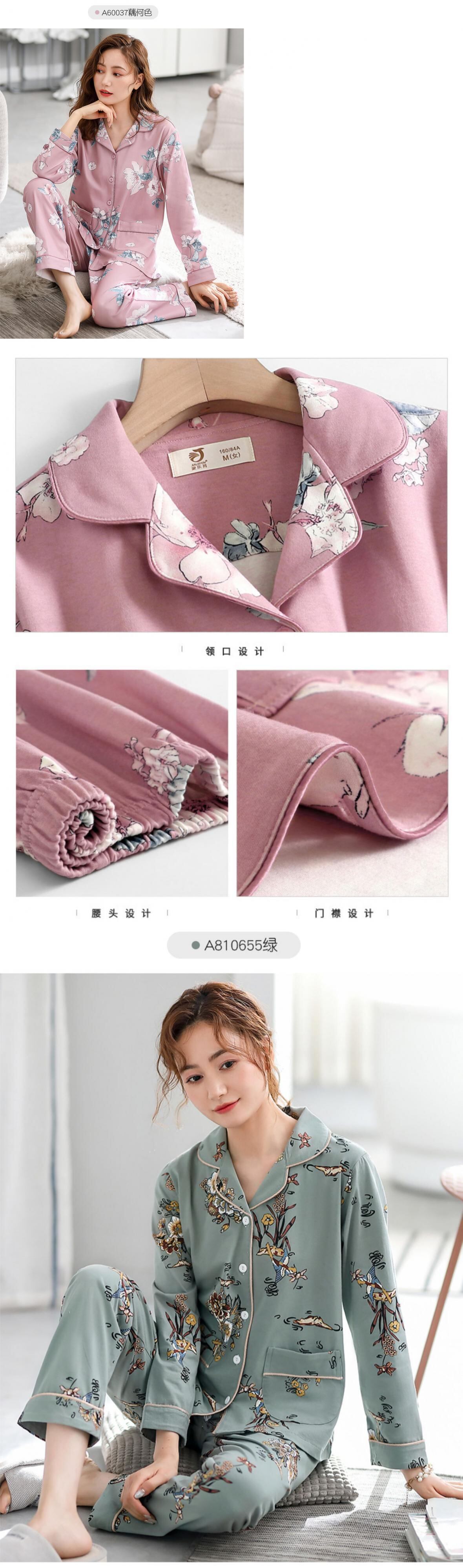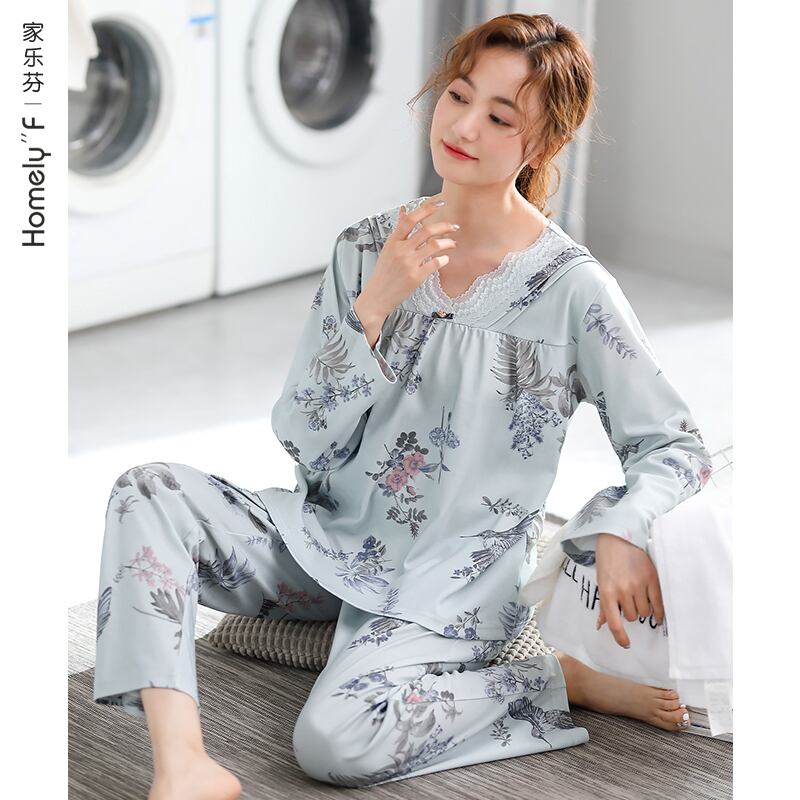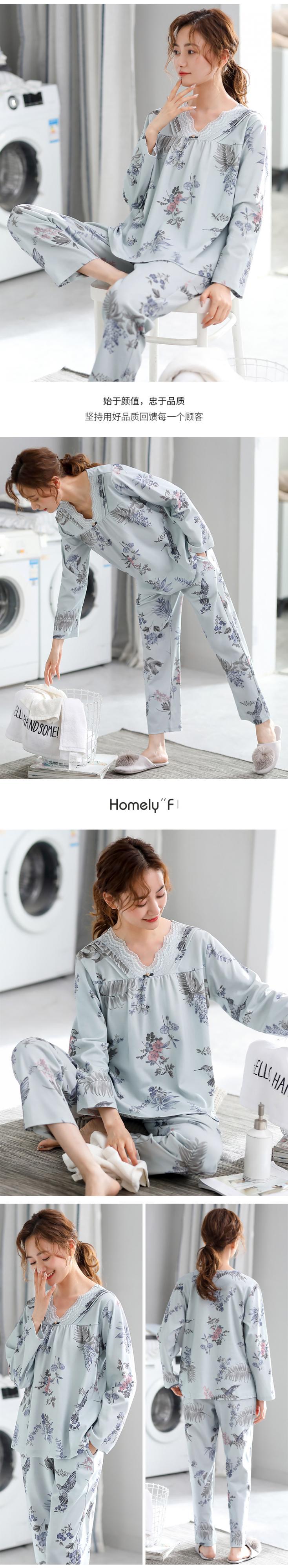 Jialefenパジャマレディース春秋モデル秋綿長袖家庭服綿薄手モデル中年お母さん中年 jial99552898266