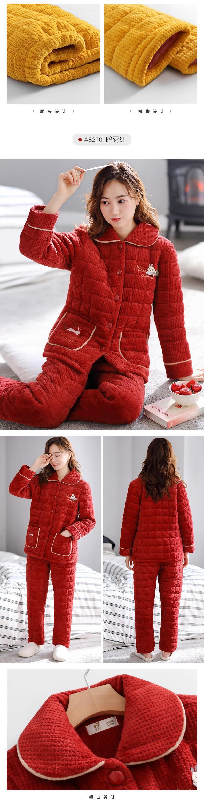 パジャマの女性の冬の3層の厚いキルティングコーラルフリースとフランネルの暖かいホームサービス冬の秋と冬のモデル jial28730718266