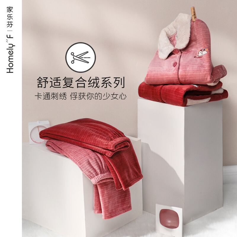 コンポジットキルティングパジャマレディース秋冬モデルコーラルベルベットシックニングプラスベルベットフランネルホームサービスウィンタースーツ jial12915712329