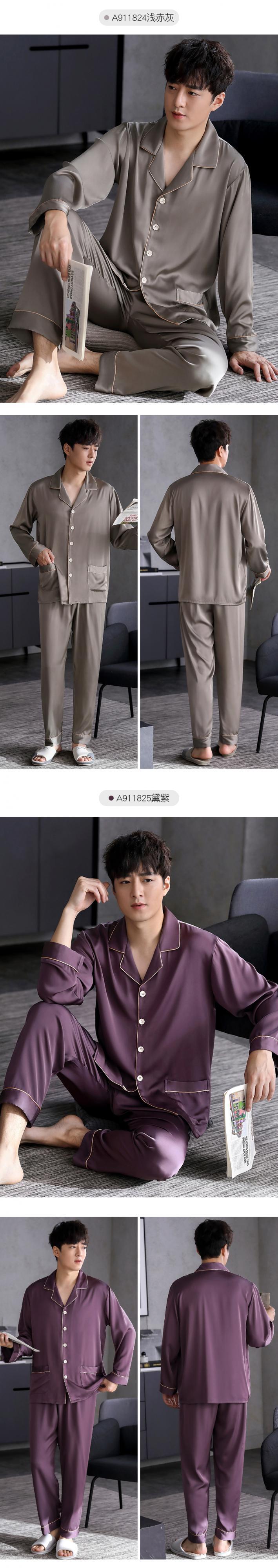 パジャマメンズ春夏シルクアイスシルク長袖ホームサービスメンズ薄春秋モデル秋のシルクスーツ jial6083458879