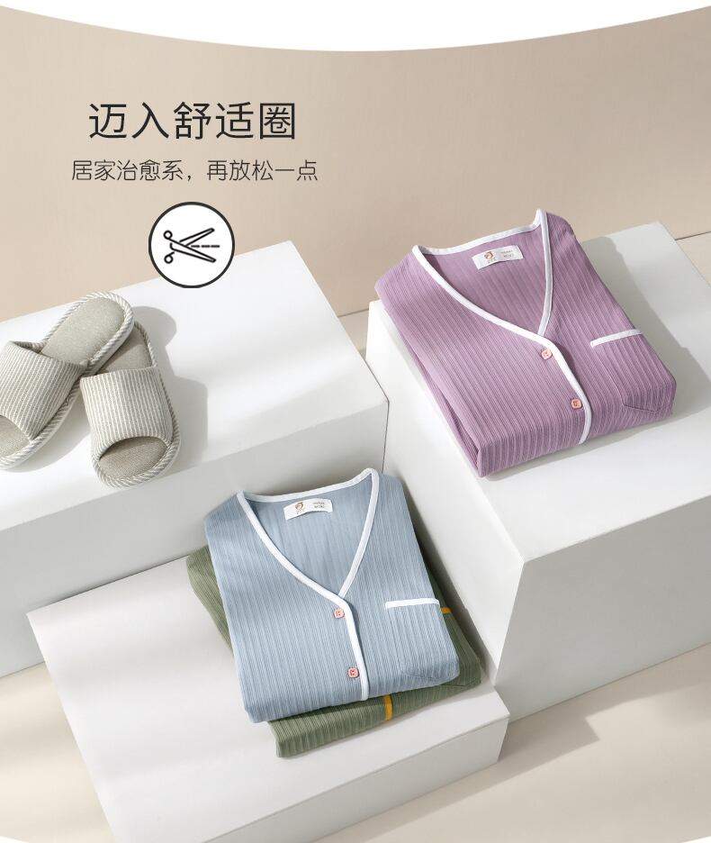 パジャマレディース春、秋、秋、秋、秋、綿、長袖、ホームサービス、綿、Vネック、カーディガン、薄手、春 jial1662626075