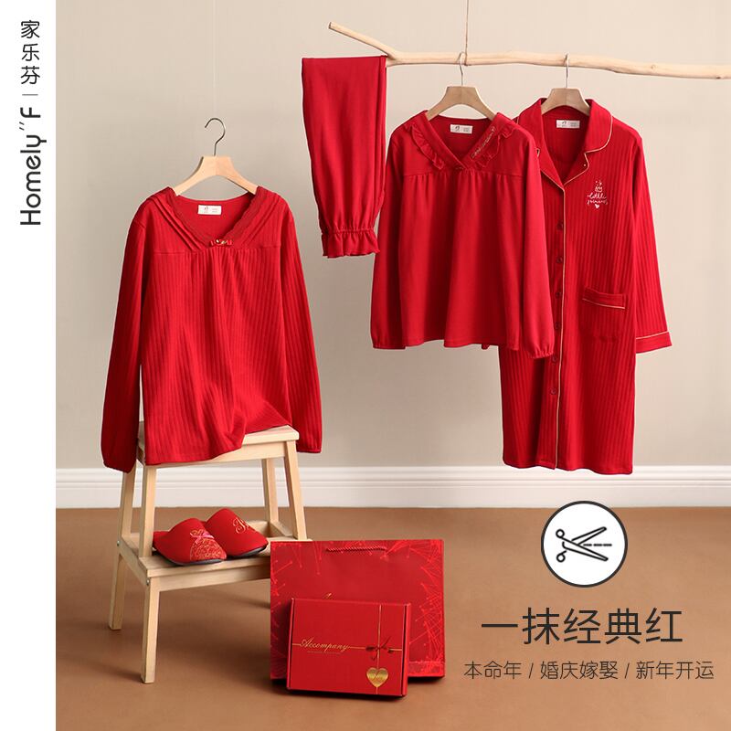 パジャマレディース春と秋の純綿長袖ホームサービス綿出生年牛結婚の赤い年秋と冬プラスサイズ jial45250452423