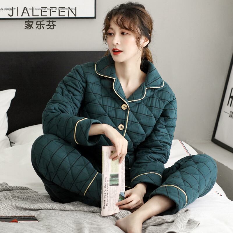 パジャマレディース冬厚めピュアコットン長袖ホームサービス秋冬モデル冬3層キルティングジャケットコットンウォームスーツ jial73987483141