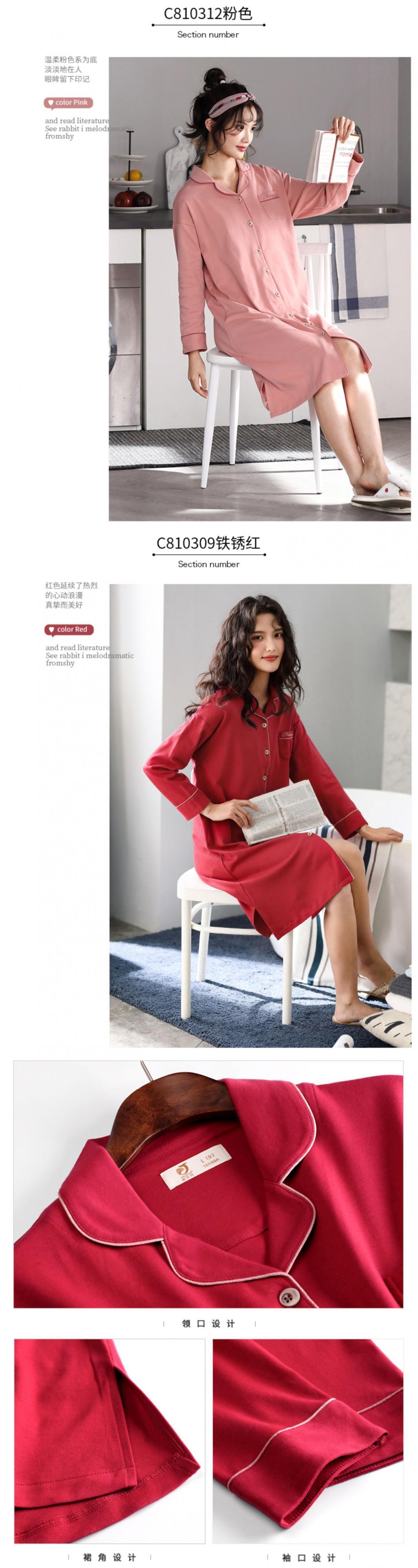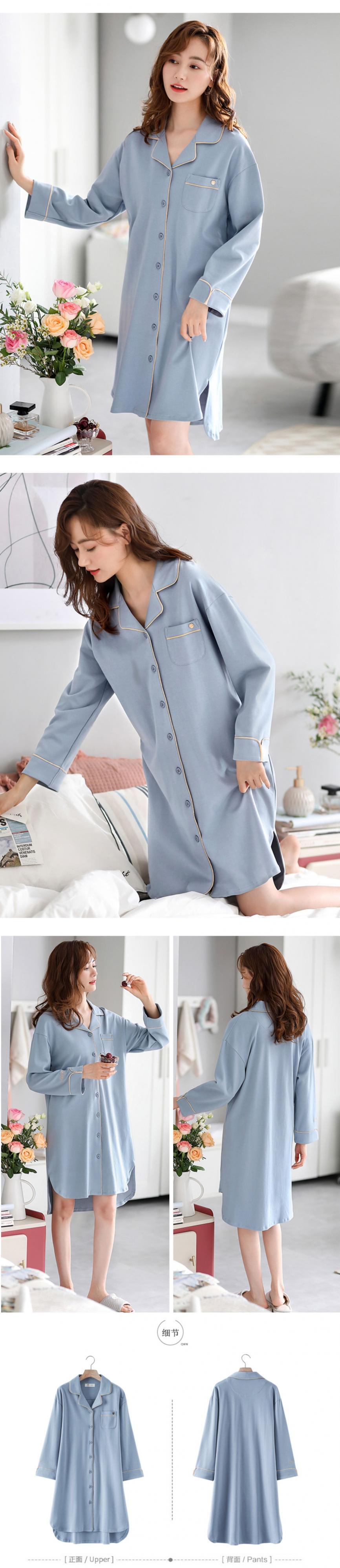 ナイトスカートレディースパジャマ春秋モデル秋長袖コットン純綿薄手ルーズミドル丈シャツカーディガンシャツ jial17108531032