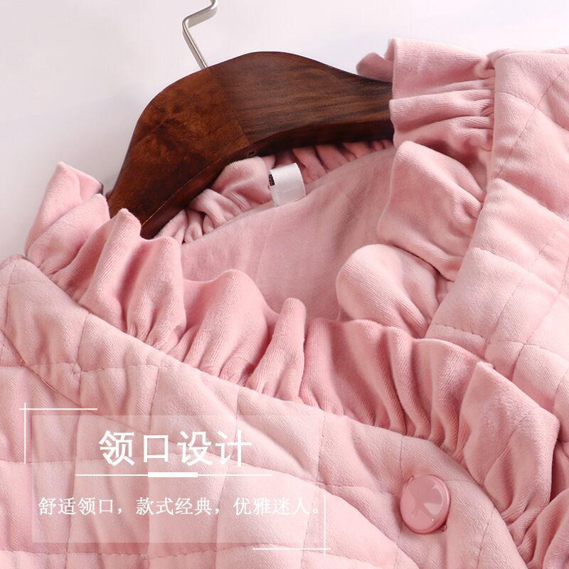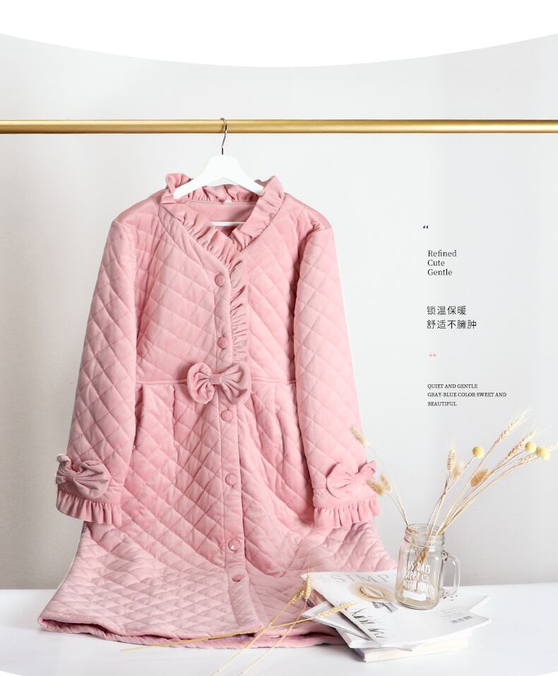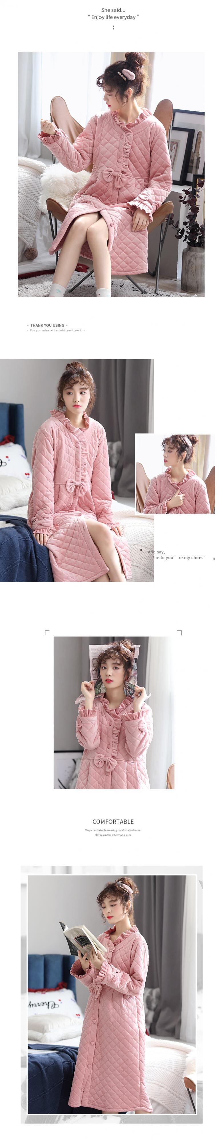 スタイルのナイトガウンの女性の秋と冬の厚く暖かい長いドレッシングガウンプラスサイズのパッド入りジャケットコーラルフリースキルトバスローブパジャマ jial65607223317