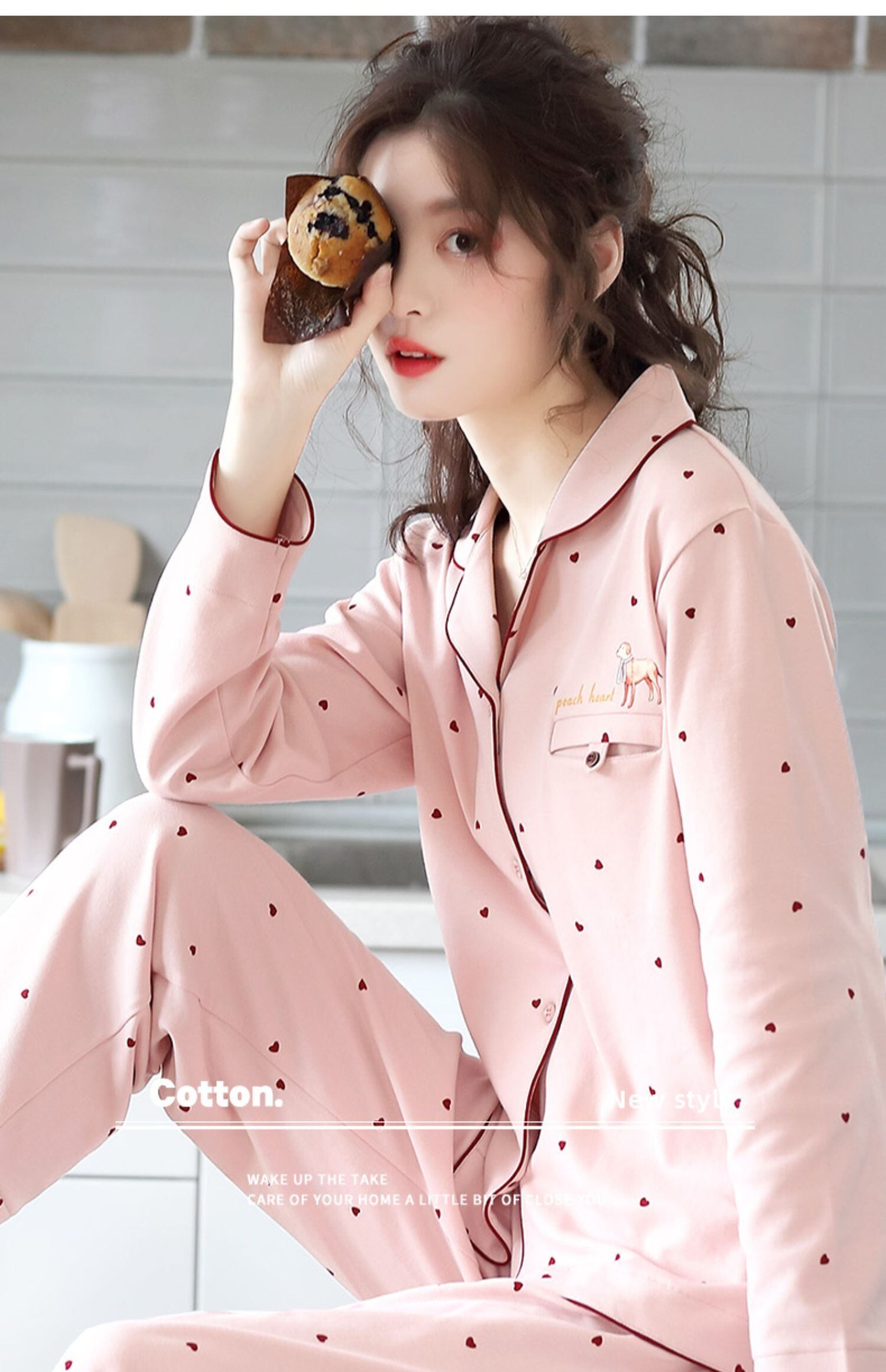 パジャマレディース春秋ピュアコットン長袖ホームサービスコットン秋冬薄手カーディガンフレッシュツーピーススーツ jial62007043978