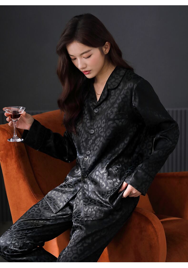 パジャマレディース春夏シルクアイスシルク長袖ホームサービス春秋秋薄シルクブラックヒョウ柄 jial40071523220
